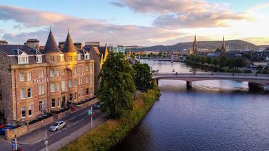This stylish, 4-star property sits on the banks of the River Ness and is 2625 feet from Inverness city center. It has an award-winning restaurant, a...