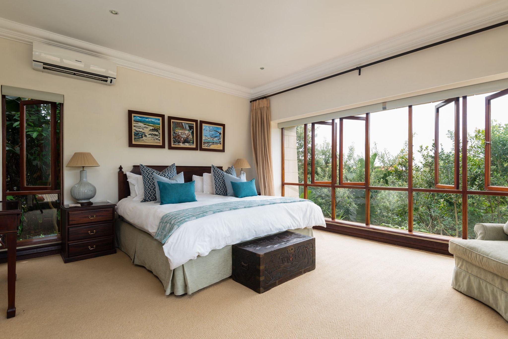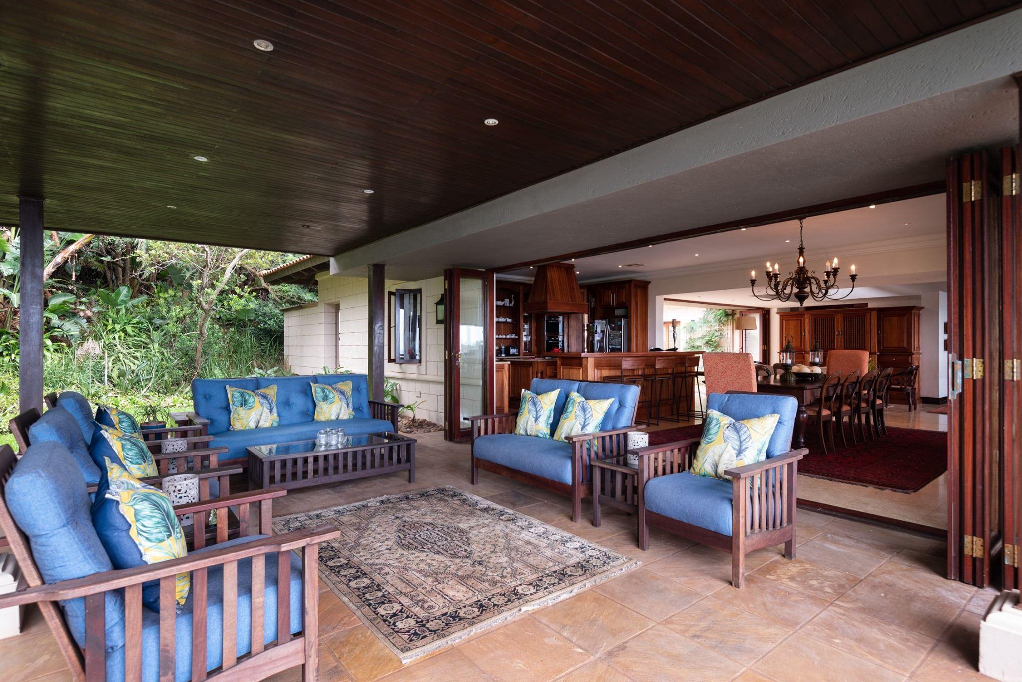 Zimbali Tinderwood Luxury VillaBedrooms: 4.5 (sleeps 9)Bathrooms: 5Area: Tinderwood, Zimbali Coast EstateIncluded: Private pool, WiFi, 4 seater golf cart, gas braai.Serviced Mon-Sat (no cleaning on Sundays or Public Holidays)Located in the pristine eco and golfing estate of Zimbali, Tinderwood Luxury Villa offers luxurious and classic but modern self-catering accommodation with unbeatable sea views. Ideal for large families looking for the best that Zimbali has to offer, this home accommodates eight people plus an au-pair. Thanks to its elevated locati