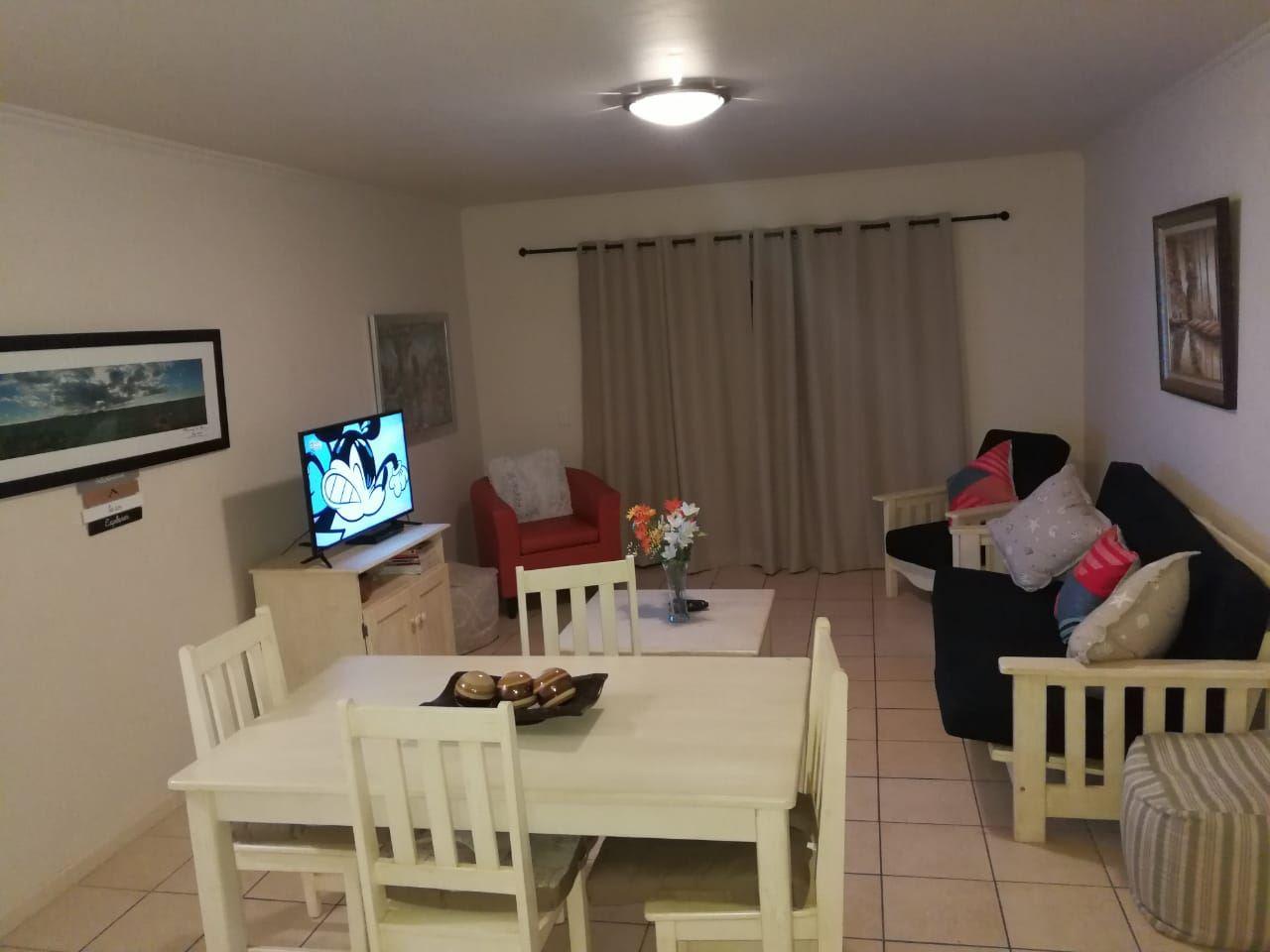11 Portobelo is a comfortable self-catering apartment for accommodating up to six in Die Voorbaai. The apartment has two bedrooms and two bathrooms. The main bedroom has a double bed and an en-suite bathroom with a shower. The second bedroom has a bunk bed and uses the second bathroom which has a bath and shower. A double sofa bed is available in the living room.The open-plan kitchen is equipped with a microwave, stove, oven, fridge-freezer, tea- and coffee-making facilities, as well as a washing machine and a tumble dryer. Guests can enjoy meals at the dining room tabl
