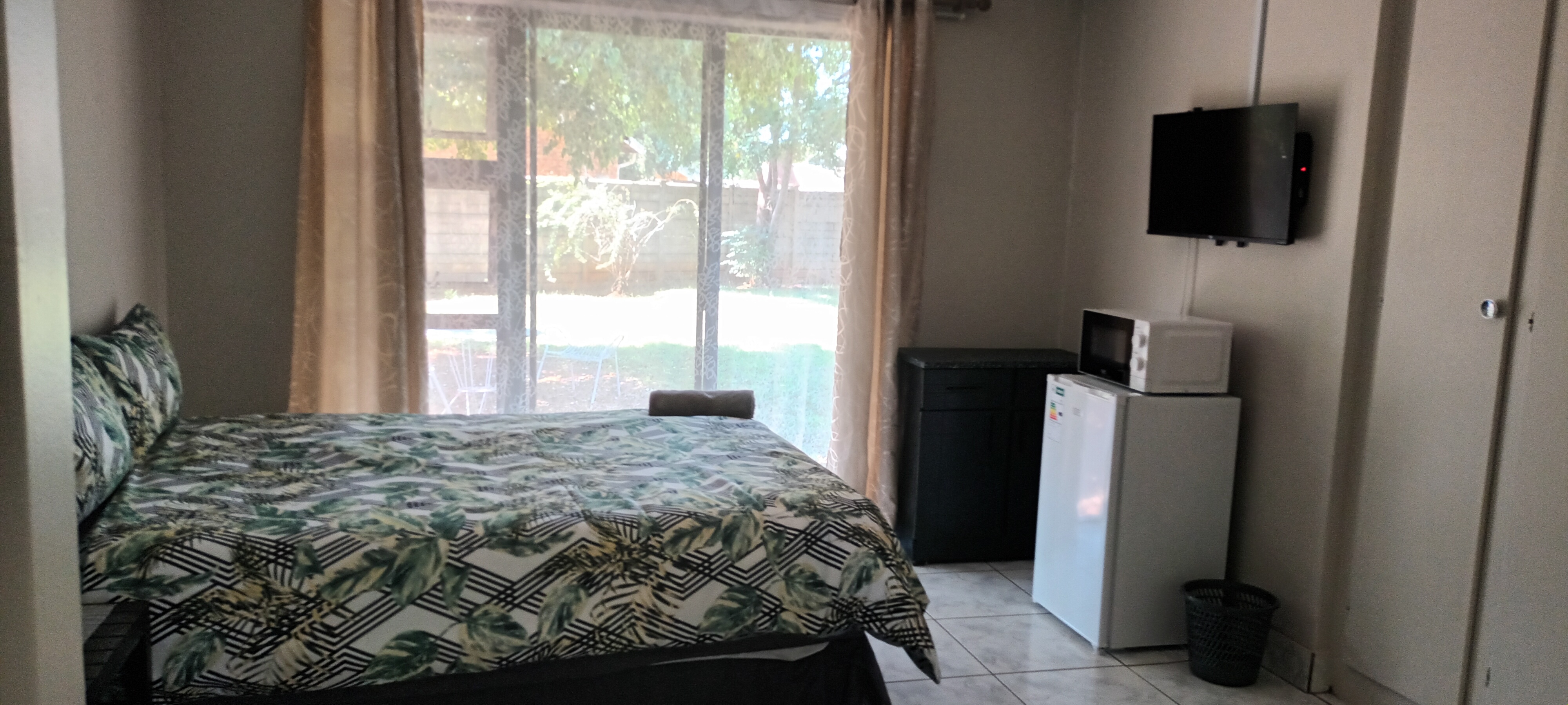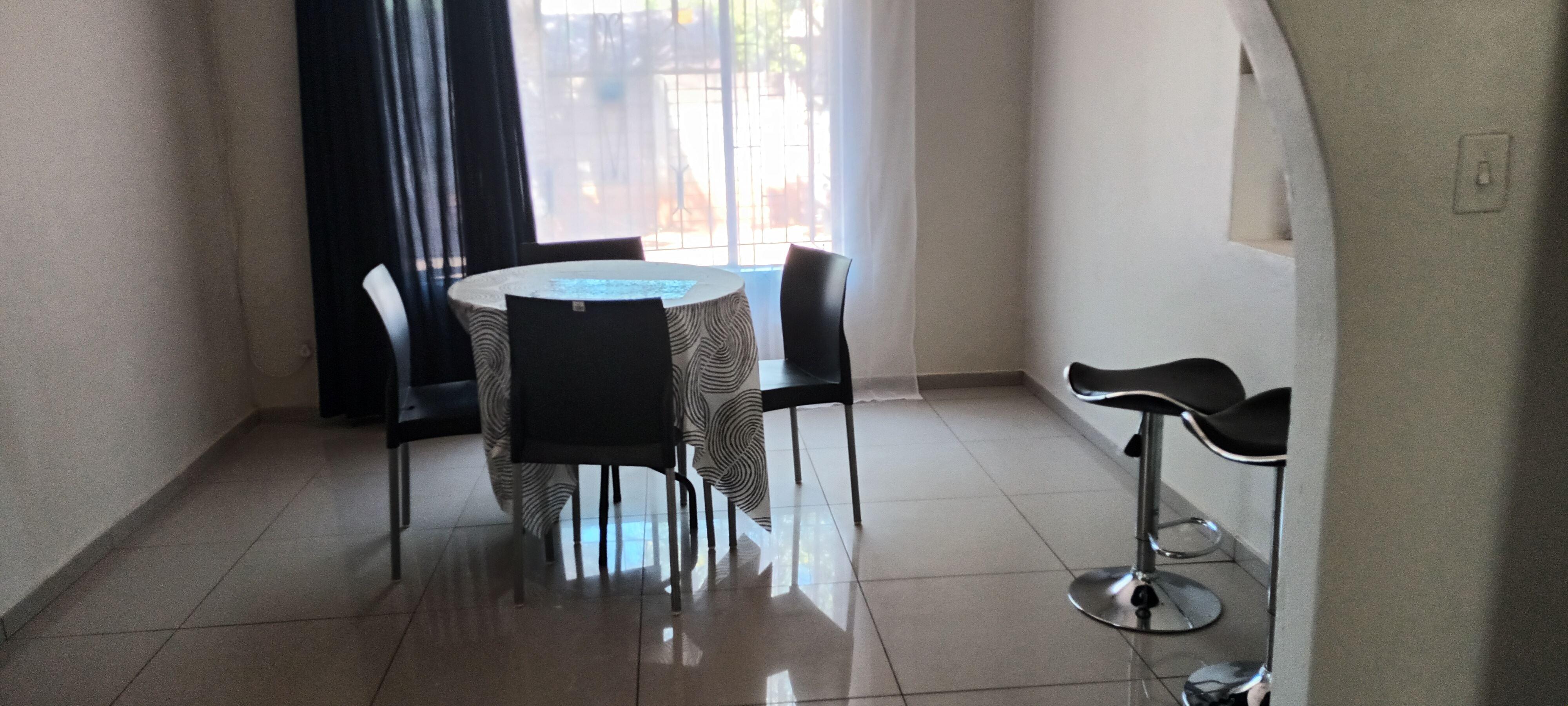 15 Rottweiler Self-Catering Accommodation is located in Hesteapark, Pretoria. This is the ideal place for guests seeking a centrally located getaway.The home comprises 3 bedrooms and 2 bathrooms, accommodating up to 6 guests. The first bedroom is furnished with a queen-size bed and has an en-suite bathroom fitted with a shower. The second and third bedrooms are each furnished with 2 single beds, and the guest bathroom is fitted with a shower fixed over the bath.The open-plan living space features a dining area and a lounge furnished with couches and a TV with DStv. The