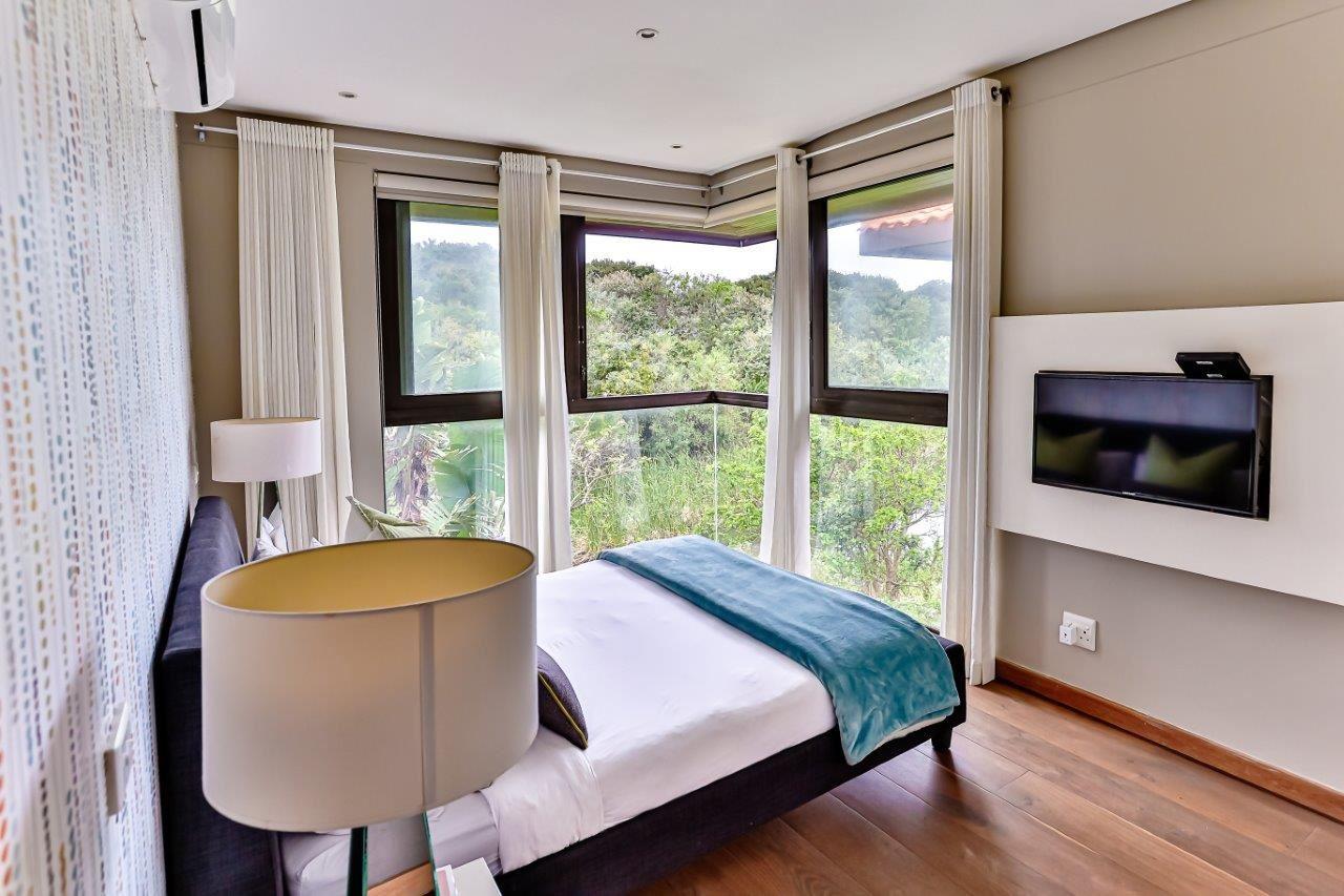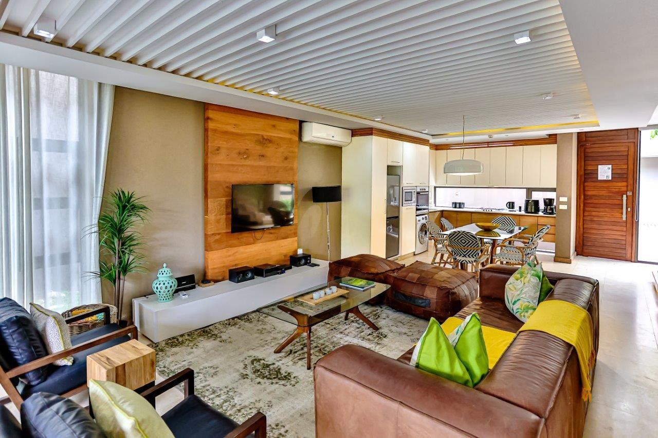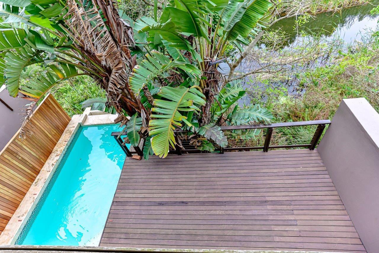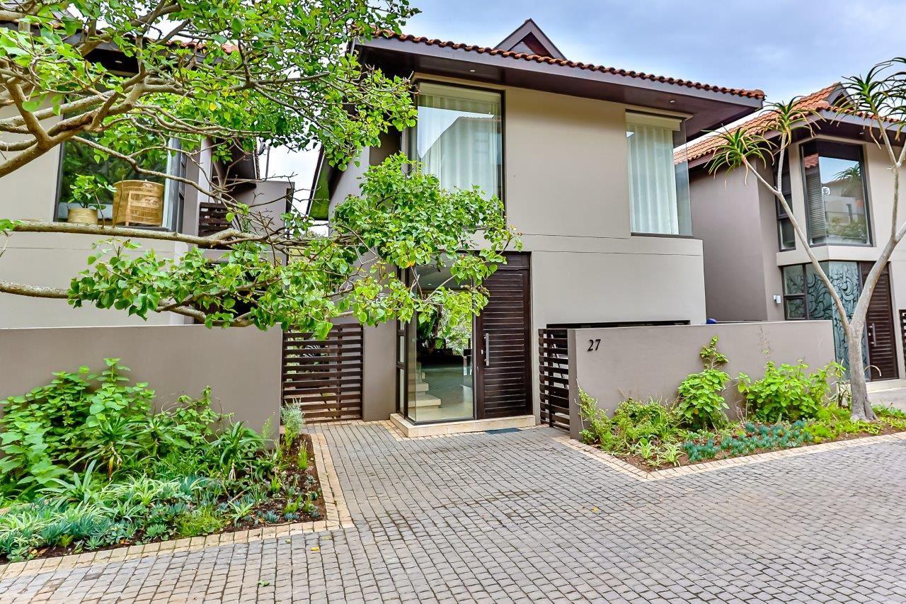 Welcome to this exquisite luxury holiday home nestled within the prestigious Zimbali Estate. Designed with impeccable attention to detail and high-end finishes throughout, this 3-bedroom retreat offers the ultimate in comfort and style. All bedrooms are situated on the top level, ensuring privacy and tranquility. The heart of the home is the open-plan kitchen, complete with a central dining table, flowing seamlessly into a spacious lounge featuring a leather couch and stylish occasional chairs – perfect for relaxing after a day of exploring. Step outside to a beautifully extended d
