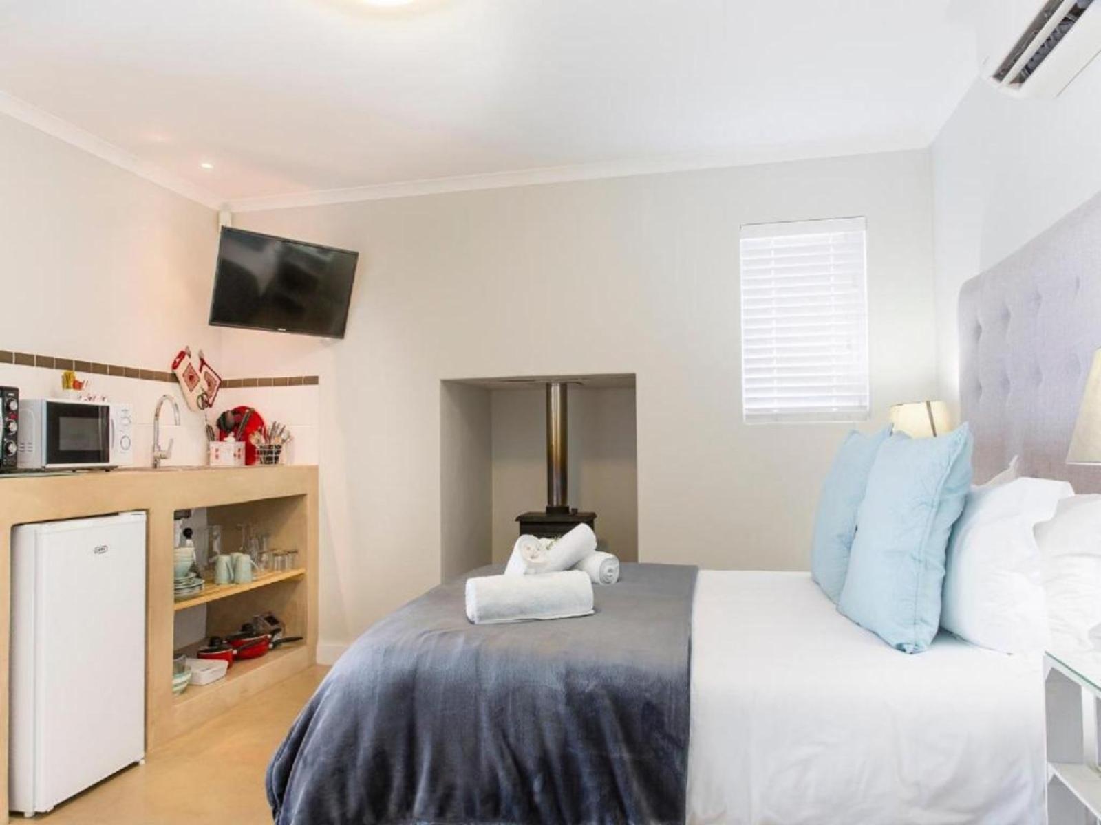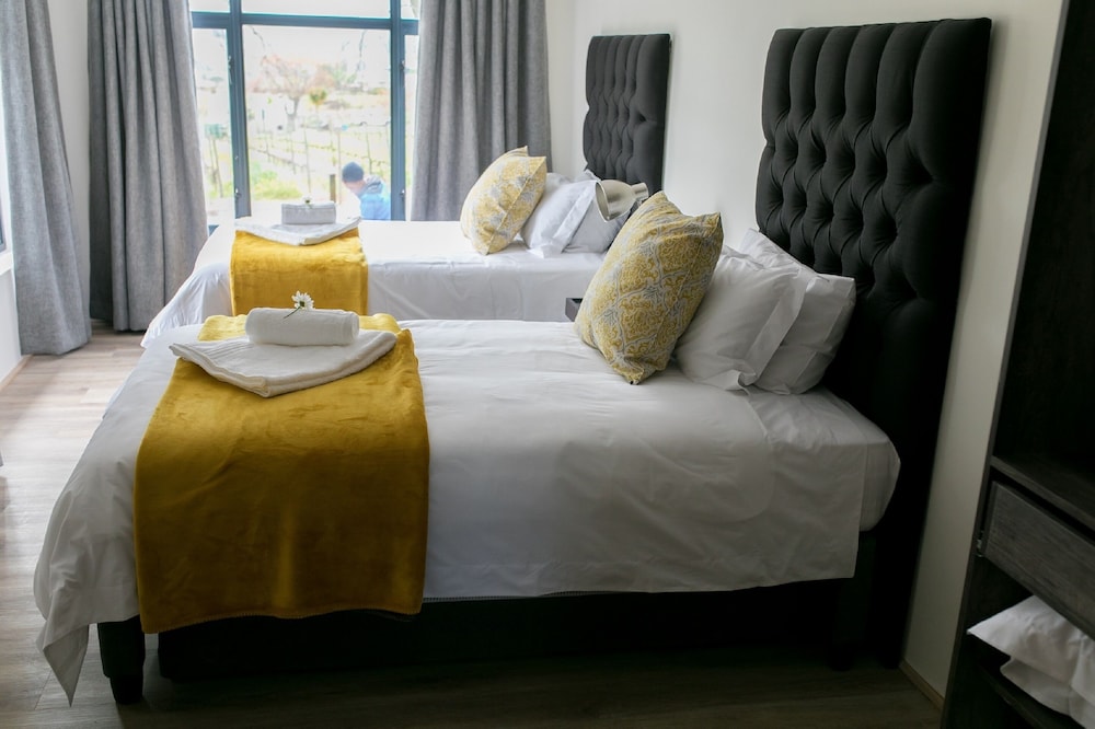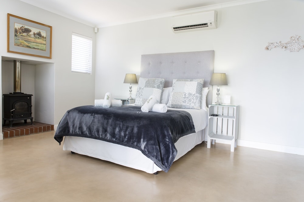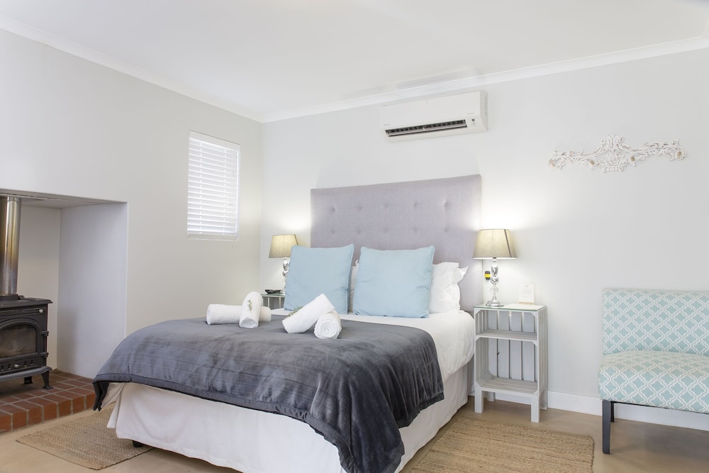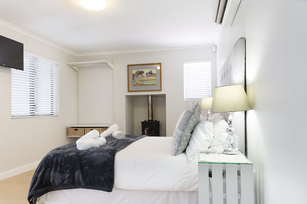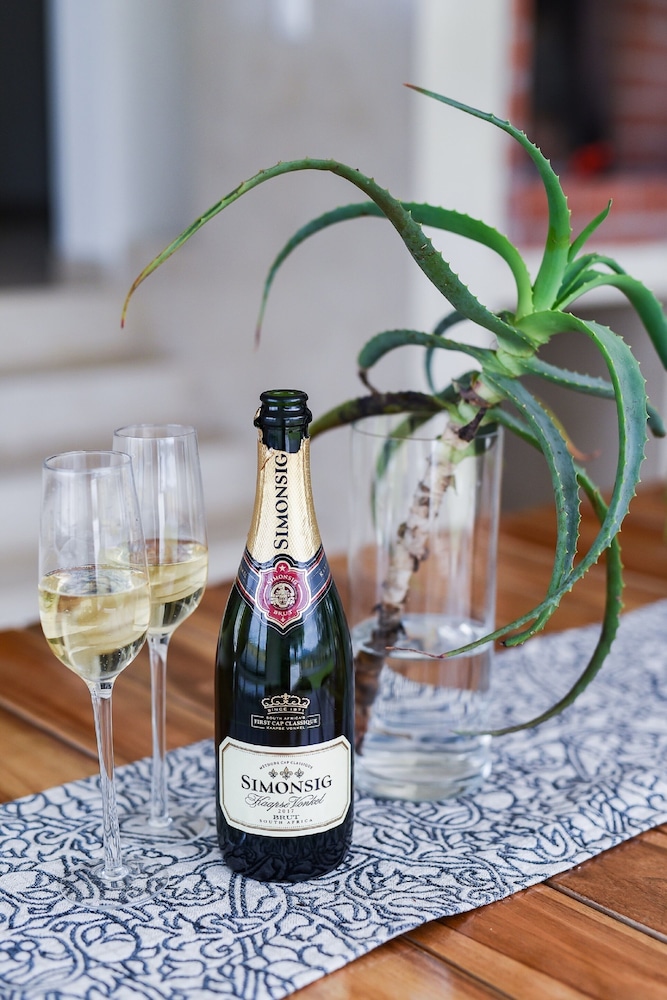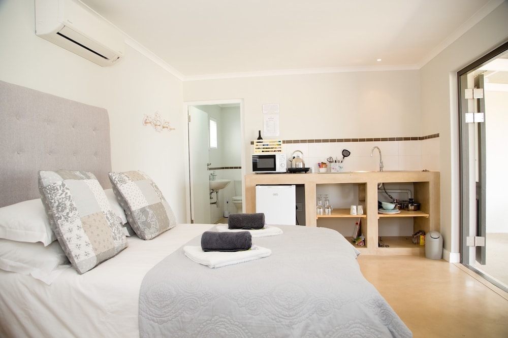 The Cottages sleep 2 people with an en-suite bathroom, the self-catering kitchenette has everything you need to prepare breakfast, lunch and dinner with. Some features include fireplace, air-condition, Television and a Minibar. Each cottage has his own Patio with braai place and a secure parking area 5 meters from your doorstep. 24-hour security.