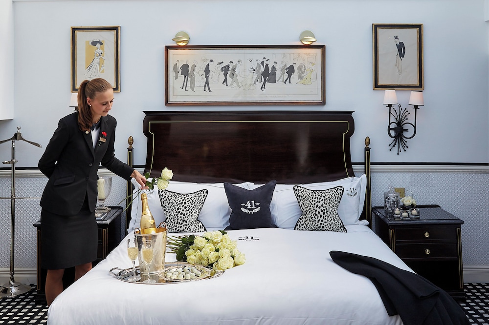 With a stay at 41, you'll be centrally located in London, steps from Royal Mews and Queen's Gallery. This 5-star hotel is close to Buckingham Palace and Big Ben.Rooms Make yourself at home in one of the 28 individually decorated guestrooms, featuring iPod docking stations and minibars. Wired and wireless Internet access is complimentary, and plasma televisions with satellite programming provide entertainment. Private bathrooms with shower/tub combinations feature designer toiletries and complimentary toiletries. Conveniences include phones, as well as safes and desks. Make use of convenient amenities such as complimentary wireless Internet access, concierge services, and babysitting/childcare (surcharge). This hotel also features babysitting/childcare and tour/ticket assistance.Dining Grab a bite to eat at the hotel's restaurant, which features a bar, or stay in and take advantage of 24-hour room service. Quench your thirst with your favorite drink at a bar/lounge. English breakfasts are available daily for a fee.Business, Other Amenities Featured amenities include a 24-hour business center, a computer station, and express check-out.