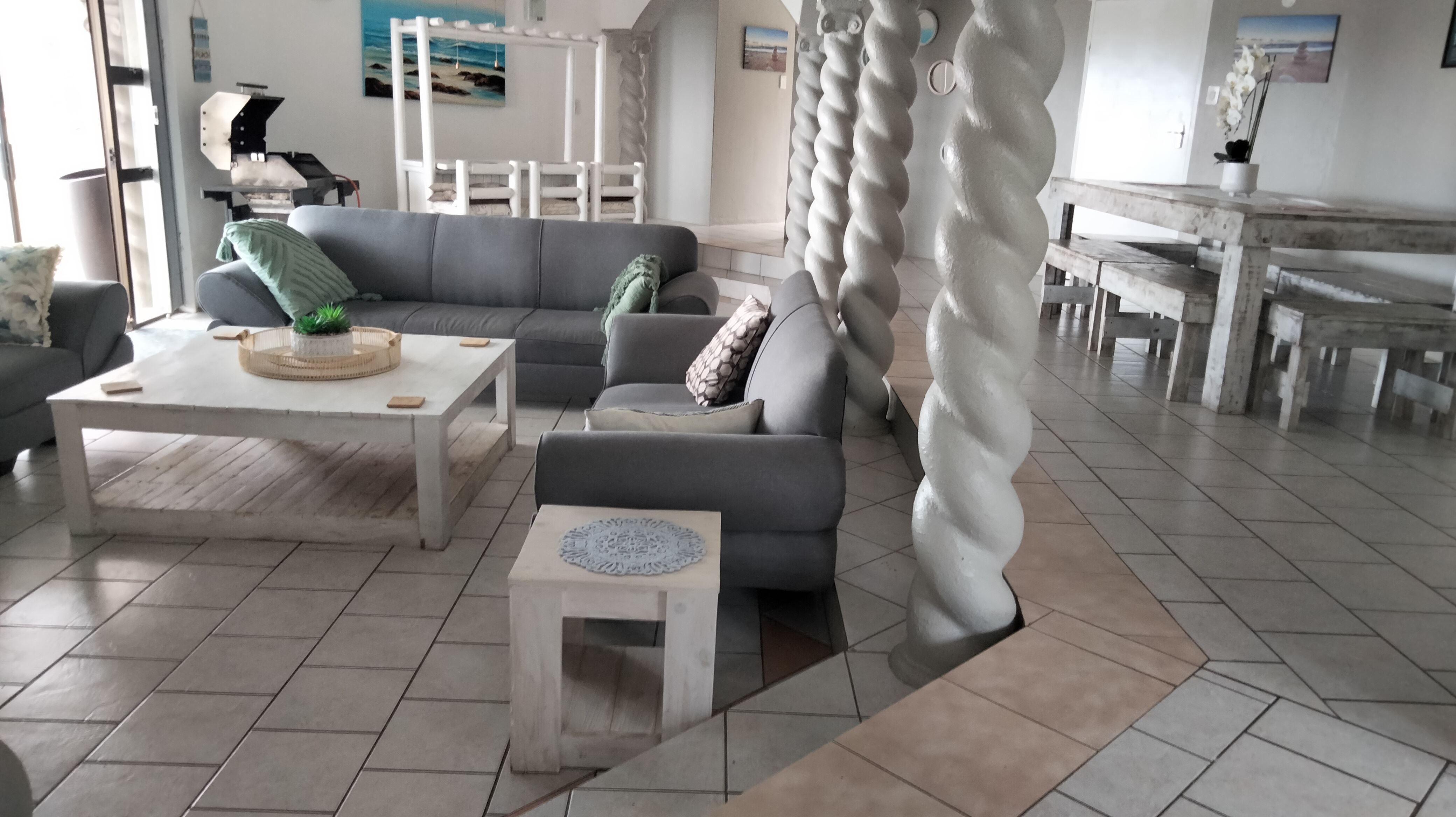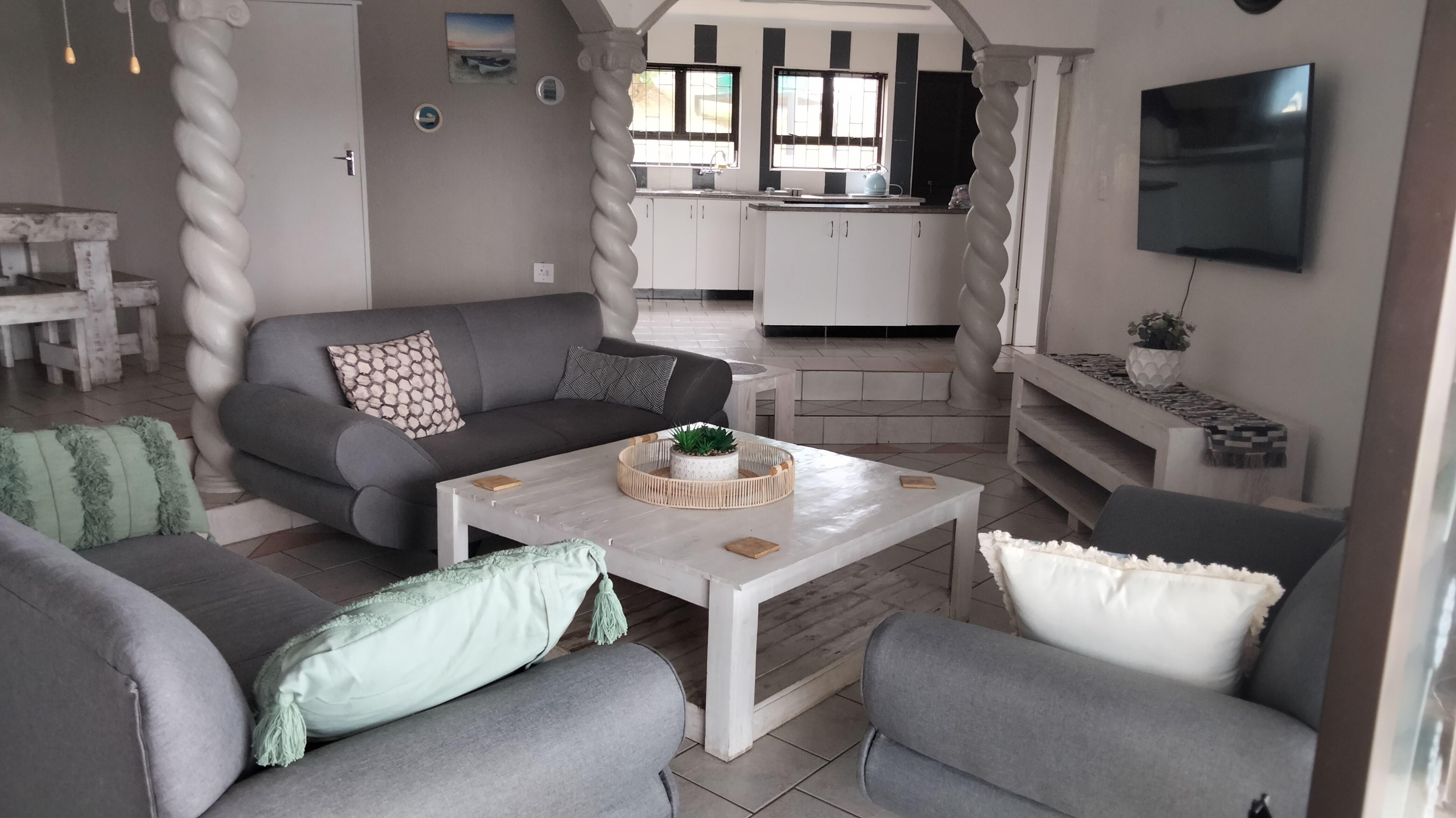 Nestled in the serene coastal town of Umzumbe, Hibberdene, 5 Equaleni Holiday House is a spacious, inviting retreat that promises an unforgettable escape with family and friends. With breathtaking views of the sea, this charming property is designed to make every moment feel special.Accommodating up to six guests, the house features three thoughtfully furnished bedrooms and three modern bathrooms. The main bedroom offers a comfortable double bed and a luxurious en-suite bathroom with a bath, shower, washbasin, and toilet. The second bedroom has a queen-size bed and access to a shar