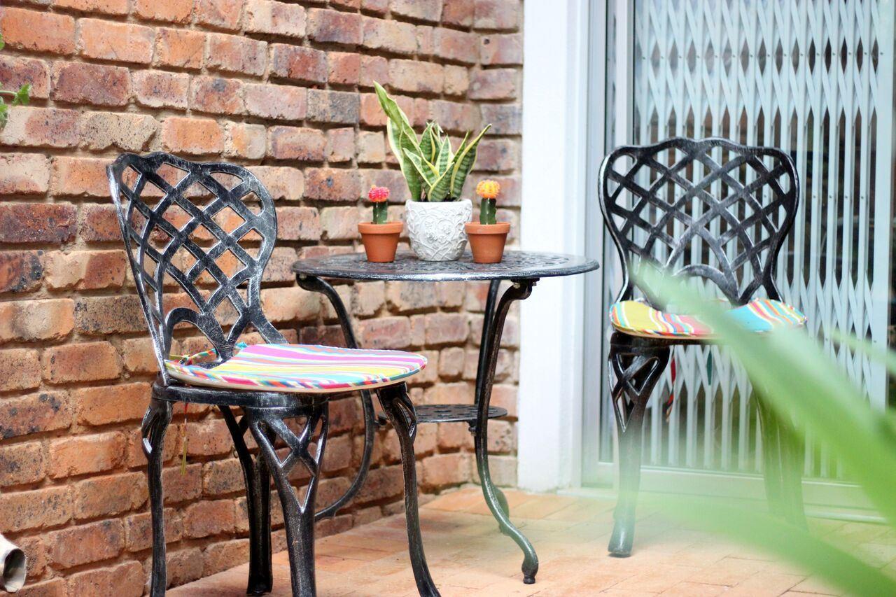This guest house is equipped with the following amenities being a braai, Wi-Fi and a swimming pool. Our unit is overlooking the pool and has a microwave, bar fridge, queen size bed and a small lounge area. We also provide a sleeper-couch in the lounge area for those guests you want to share the apartment without sharing the bed.