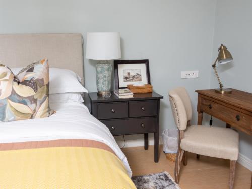 The Executive Suite is beautifully furnished for unparalleled comfort. This spacious signature suite features a luxurious king-size bed adorned with premium 100% percale linen and a selection of pillows tailored to your sleep preferences. A dressing room leads onto the airy bathroom, which boasts a free-standing bath, double vanities, and a walk-in shower. A cosy lounge area invites moments of relaxation, perfect for enjoying freshly brewed coffee or tea, while the air conditioning offers a refreshing retreat on warm days.