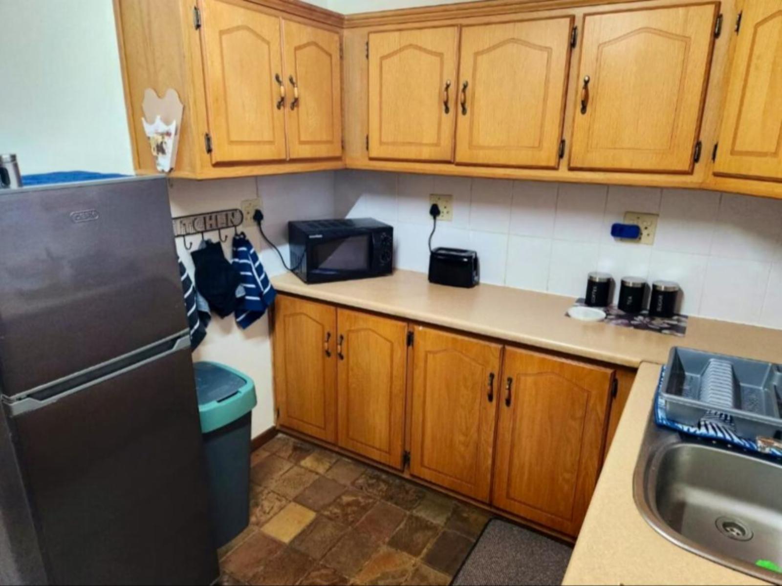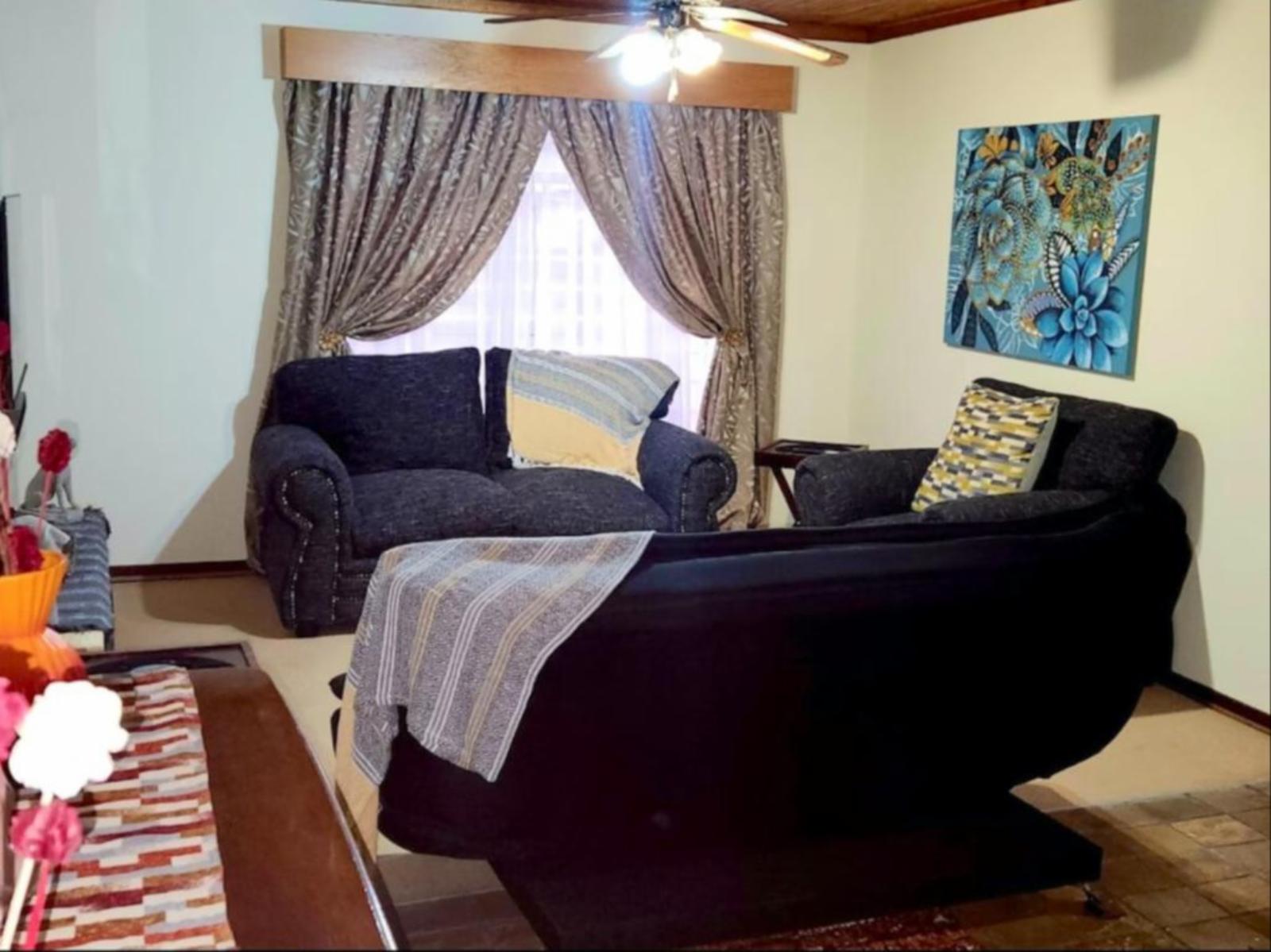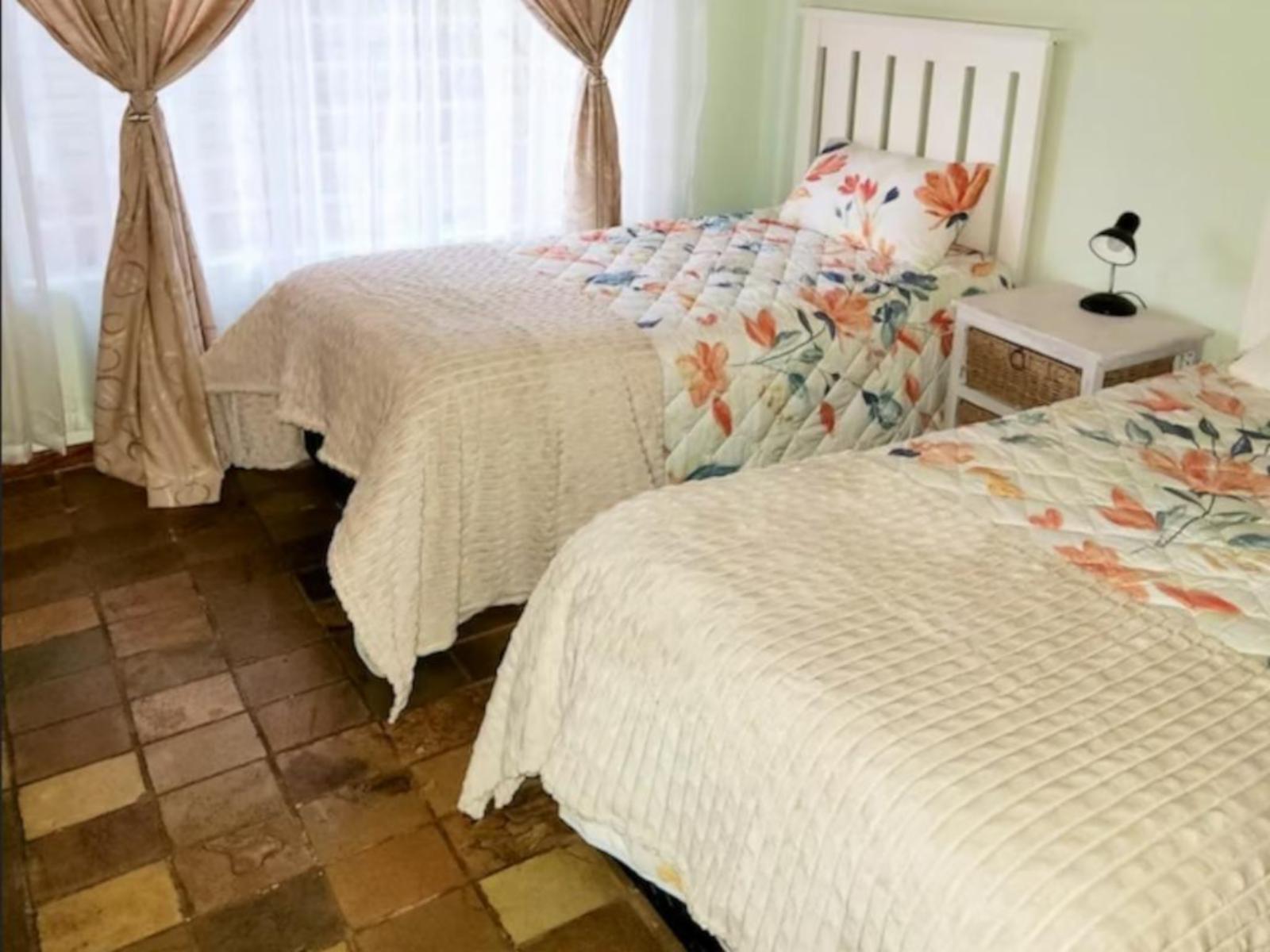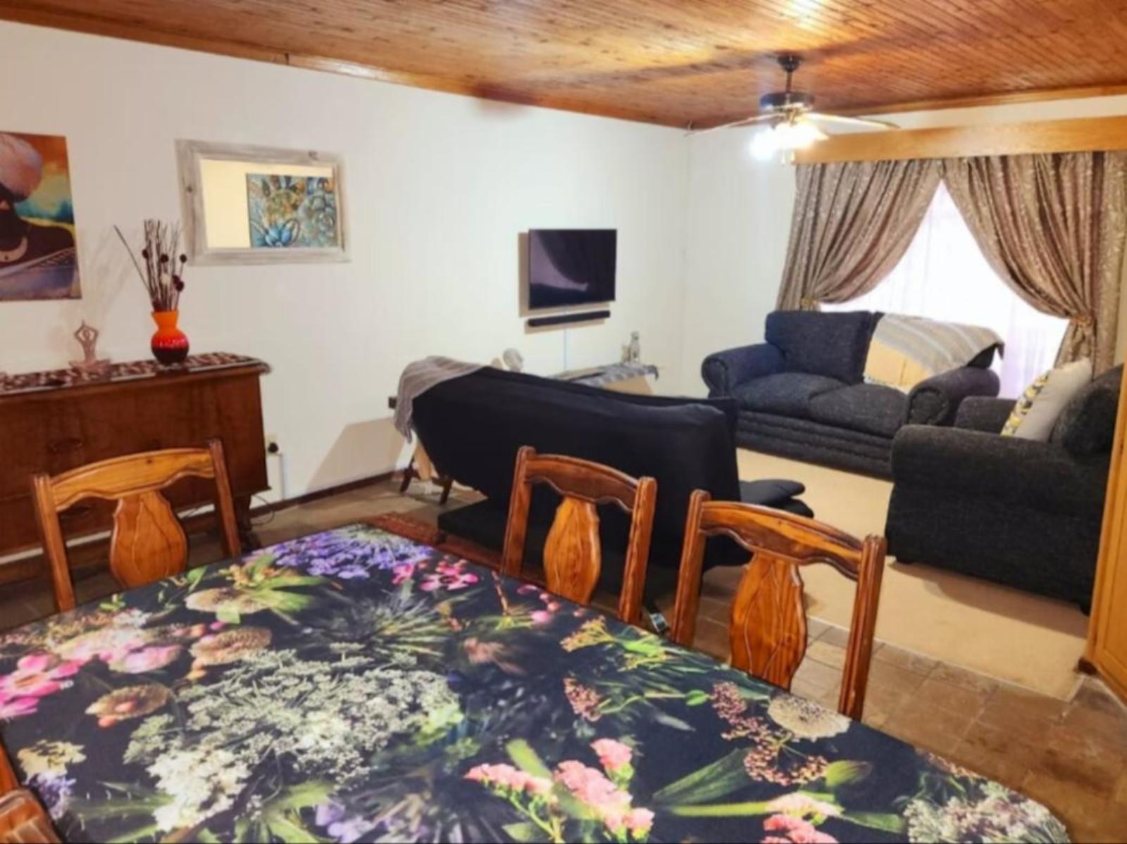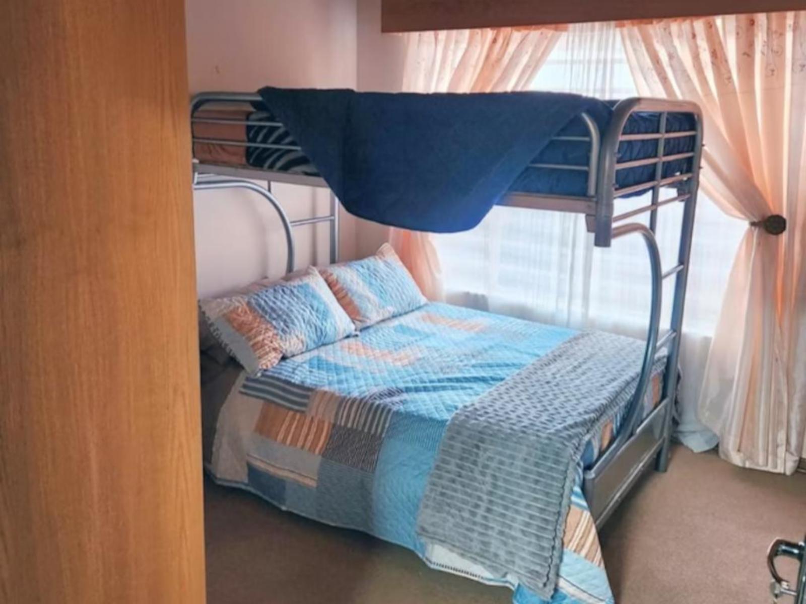5 @ Stock Accommodation is a self-catering apartment located on the owner's property in Bloemfontein.This two-bedroom apartment can accommodate six guests at a time. The main bedroom is furnished with a tri-bunk bed, which has a double bed at the bottom, and a single bed on top. The second bedroom contains two single beds, while the living area has a sleeper couch. Guests share a bathroom fitted with a bath and shower.The kitchen is equipped with a fridge-freezer, gas stove, oven, microwave, kettle, and toaster. The living area features a six-seater dining table, a comfy loun
