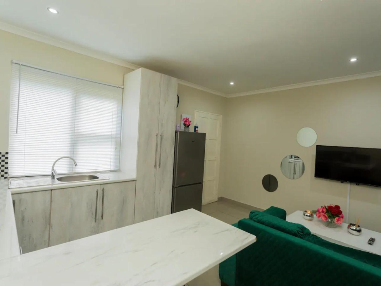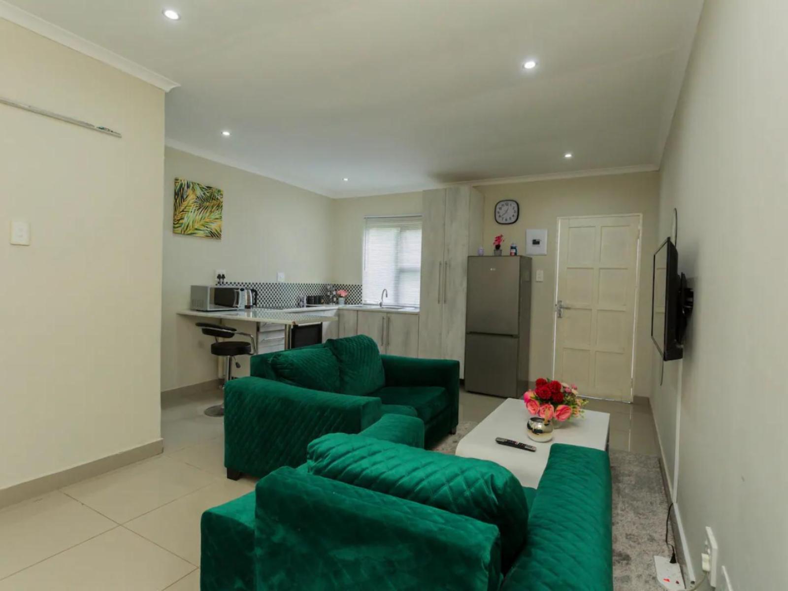 76 On Milton offers charming self-catering studio apartments located on a secure property in Lombardy East, Johannesburg. The property is ideally situated within 3 km from Alex Mall, 6 km from Huddle Park Golf & Recreation and 19.5 km from O.R. Tambo International Airport. Each tastefully decorated studio apartment comprises open-plan living and is furnished with a double bed and features a private bathroom. The studio boasts a lounge area and a kitchen with the necessary appliances to cook meals. Free Wi-Fi access is available. Free and secure parking is availabl