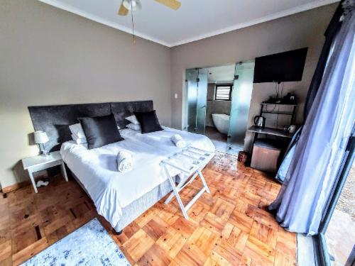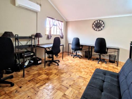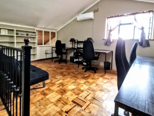 9 on Drommedaris is situated in the leafy neighborhood of Simonswyk and is centrally located to Stellenbosch CBD. The neighborhood is safe and secure and walking distance (within 2 km) of most of the attractions Stellenbosch has to offer.Accommodation is offered in a variety of guest rooms. Our rooms are fitted with air-conditioning, a tea and coffee station, free toiletries, and a desk. Most rooms have a flat-screen TV with cable channels and a bar fridge. Free Wi-Fi is available throughout the property.The rooms have access to the main house communal fully equipped ki