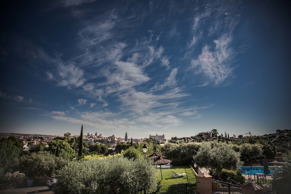 This hotel is peacefully situated in the town quarter 'Los Cigarrales', one of the towns most beautiful and exclusive quarters, with impressive views out on to Toledo's old town. The town centre with its vast array of shopping facilities and entertainment venues is located just 2 km from the complex. Links to the public transport are to be found just a stone's throw away (200 m).//The Toledo country house architecture of this hotel, mean it is fittingly located amidst 12,000 m² of greenery. There are a total of 40 rooms of which 37 are doubles and 3 are singles. Facilities include a foyer with a 24-hour reception desk, a safe, cloakroom and lift in addition to a conference room, a TV and lounge area, public Internet access as well as a laundry service. Amongst the dining options count a café and an air-conditioned à la carte restaurant with highchairs for infants. A car park and garage are also available, as is a bicycle storage facility.//The comfortable rooms each feature an en suite bathroom with hairdryer, a direct dial telephone, satellite TV, a hire safe and individually regulated air conditioning and heating. Selected rooms come with a balcony.//During the summer, guests are offered use of the hotel swimming pool, poolside snack bar and sun terrace where sun loungers and parasols have been laid out ready for use.//Guests may select their breakfast from a buffet; lunch and dinner may be taken à la carte or chosen from the menu.