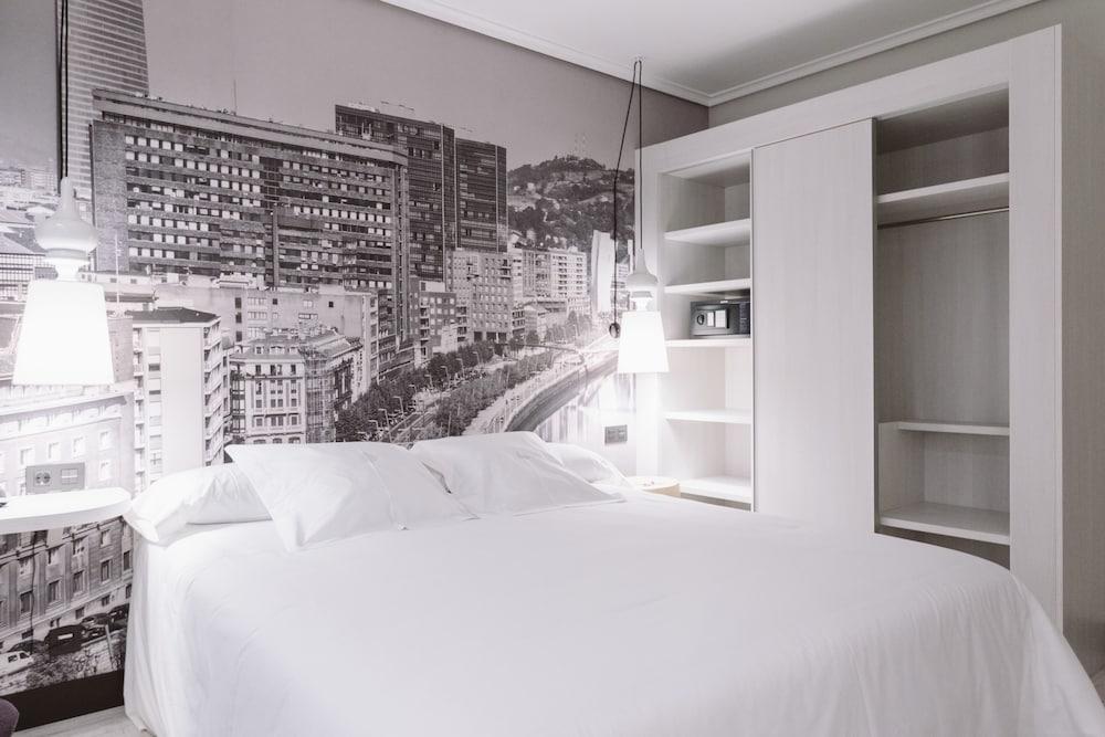 The hotel is strategically located in the financial centre in the heart of Bilbao, opposite the Palace of Justice.Main sights of interest, such as the Guggenheim Museum, the Teatro Arriaga opera house and the Euskalduna Concert Hall are also close. The metro station is just in front of the hotel. The hotel facilities include 6 conference rooms, a TV room and a games room. A car park are also available. Dining options include a café, an inviting bar and an à la carte restaurant offering international and regional cuisine. The cosy rooms all have en-suite bathroom and come well-equipped as standard. The hotel offers guests use of its own sauna, steam bath and gym. The nearest golf course lies some 10 km away. Guests are invited to serve themselves from the buffet at breakfast each morning. At lunchtime and in the evenings, dishes may be ordered à la carte.