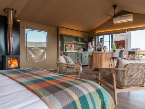 AfriCamps Boutique Glamping offers unique self-catering accommodation on the most beautiful working farms and estates in South Africa. In partnership with our landowners, AfriCamps creates unique outdoor experiences under canvas, where guests can enjoy life on a working farm, where play is unrestricted and kids can become little explorers again. Set on one of the biggest working Ostrich farms in Southern Africa, this AfriCamps location is one to experience. (Don’t miss the authentic ostrich tour if you want to see these amazing creatures up close.) A large portion of the farm has b