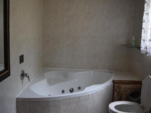 Executive Guest House next to Rand Airport, Wadeville, Germiston Stadium with sparkling Pool & trampoline, etc with secure under roof parking. Rooms have private entrance, en-suite spa bath and separate shower, goose down duvet, electric blanket, digital safe, fan, heater, Colour TV. Verandah for smoking, pool, lapa, braai. Full Breakfast and home cooked Dinners. Airport Shuttles. Free WIFI on site