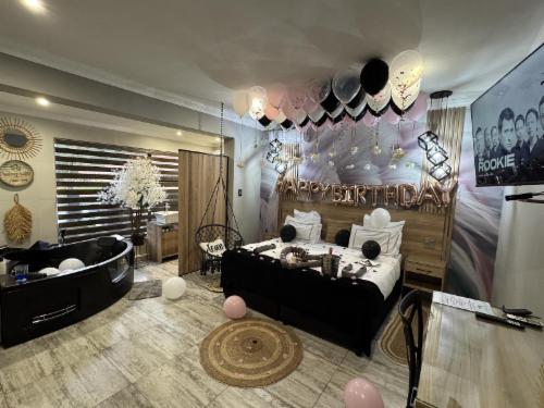 Africa Paradise Boutique Hotel offers a serene and luxurious retreat just ten minutes from OR Tambo International Airport, nestled in the secure and tranquil suburb of Westdene, Benoni. Our hotel combines warm hospitality with modern amenities, making it an ideal choice for both business and leisure travelers.Accommodation:With 12 exquisitely designed rooms and a suite, we cater to every type of traveler, from singles to families. Our rooms are elegantly furnished and equipped with air-conditioning, heating, a jet spa, and tea/coffee-making facilities. Select rooms also featu