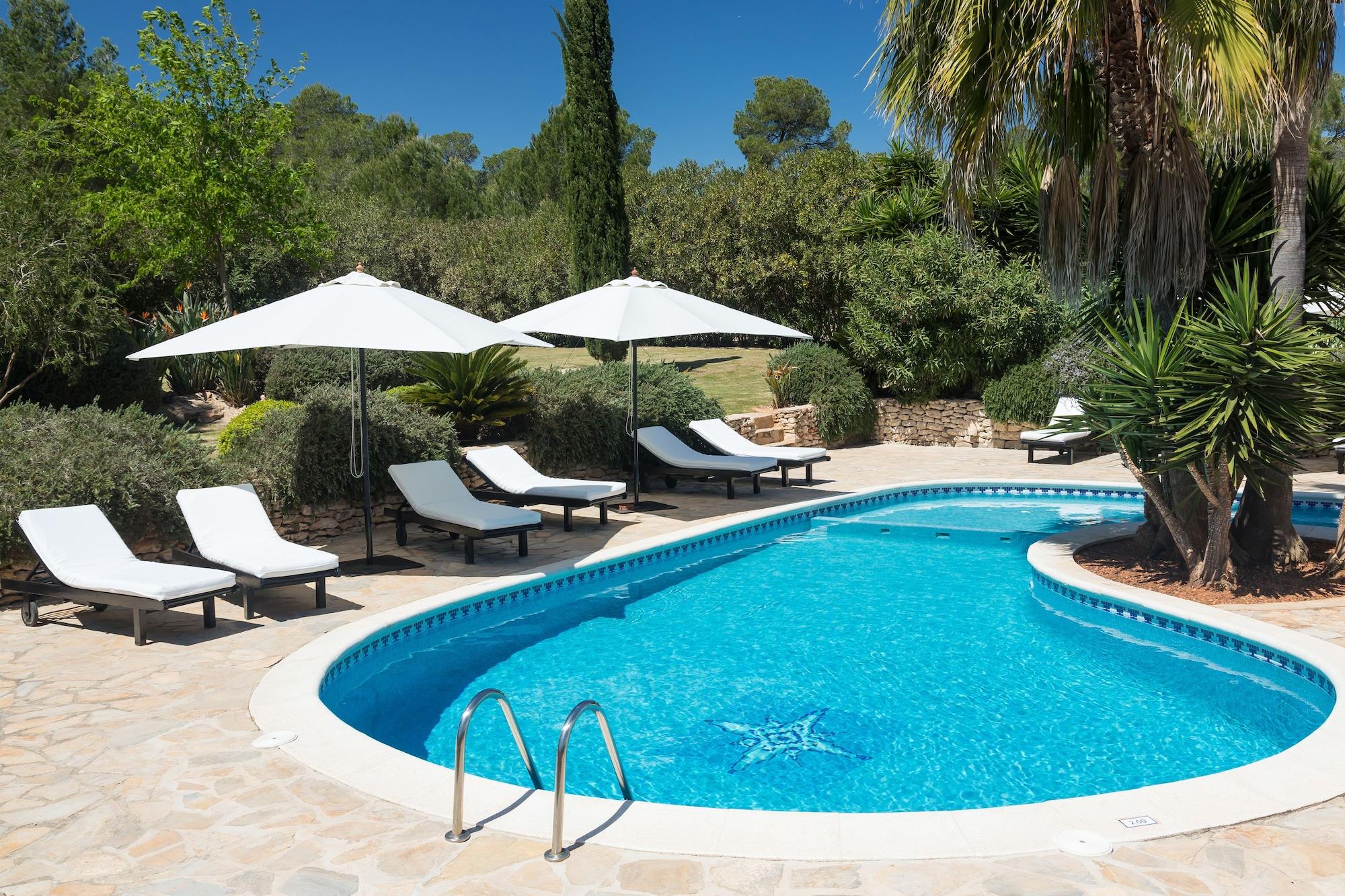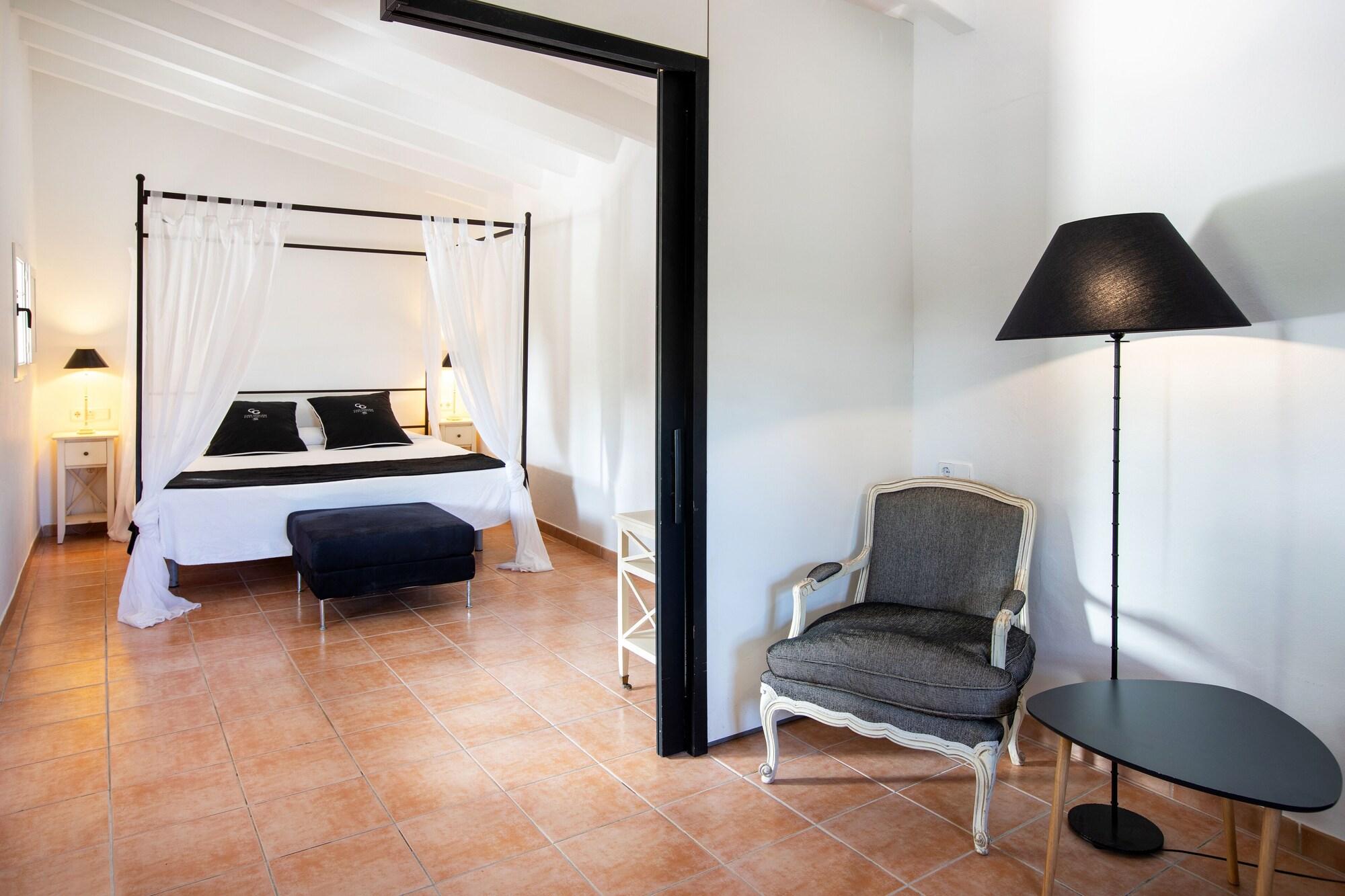The hotel is situated just 5 km from Ibiza Town, with its rich cultural heritage. The beach at Talamanca is just a 10-minute drive away.//Built in 1850 and renovated in 2006, this air-conditioned hotel has a total of 7 rooms, of which 6 are doubles and 1 is a suite. It also has its own garden and terrace. Facilities on offer include an entrance hall, a hotel safe, a currency exchange facility, a cloakroom, a café, a bar, a games room, a TV room, a restaurant, Internet access/ WLAN and room and laundry services. There is a children's playground on site and parking is provided for those arriving by car.//All the rooms are equipped with a fully fitted en suite bathroom and many facilities such as air conditioning (hot and cold), a hairdryer, a double or king-size bed, a direct dial telephone, a hi-fi system, a safety deposit box, a satellite TV, a minibar and WiFi Internet access.//There is an outdoor swimming pool on the hotel grounds, complete with children's paddling section, poolside snack bar and sun loungers and parasols on the sun terrace so guests can soak up some sun. Massages are also available for a small additional fee. Guests can rent bicycles, motorcycles, cars and boats.//A continental breakfast is served each morning, while lunch and dinner may be ordered à la carte.//The hotel is located on the Ibiza A road towards Santa Eulalia at the 5 km point and turn-off for San Miguel/ Sta. Gertrudis. Follow signs for the hotel.