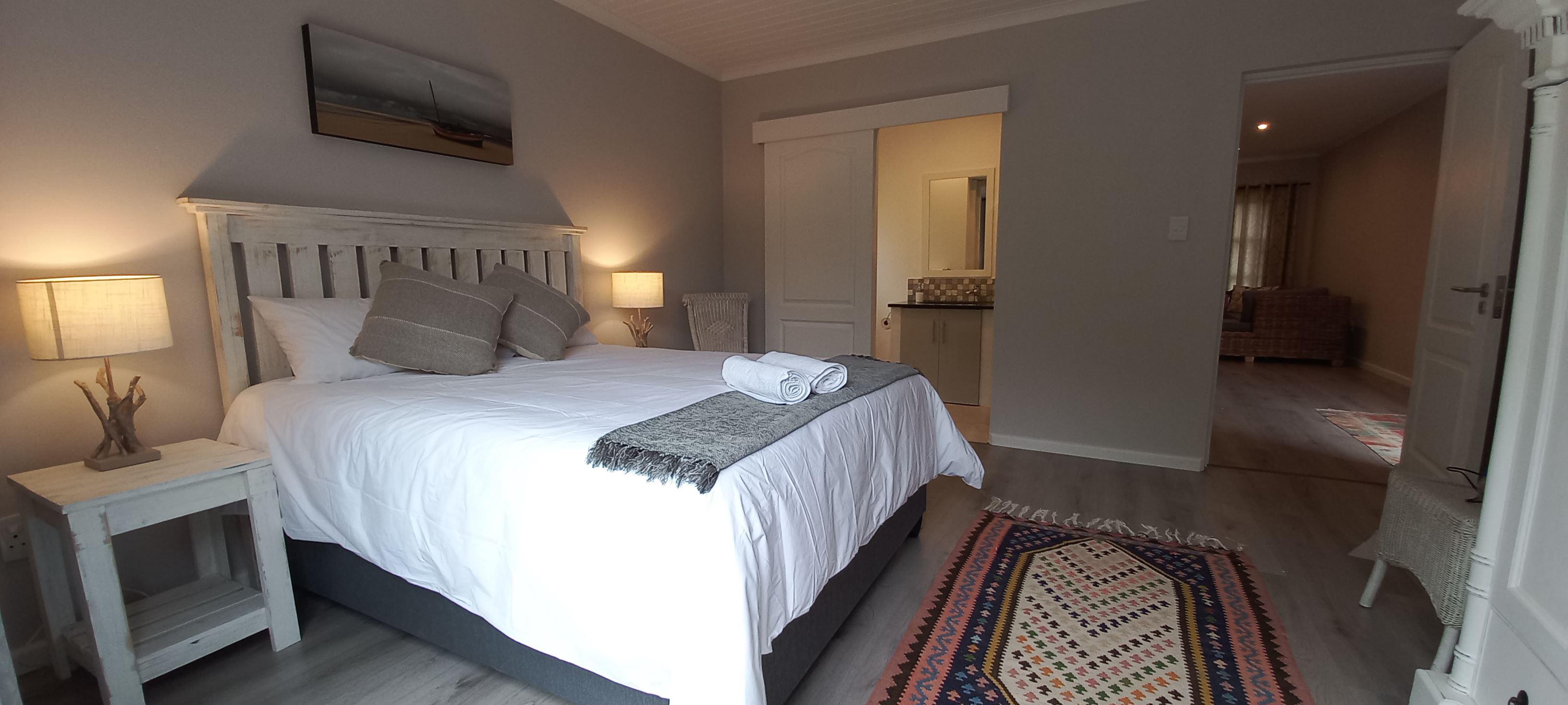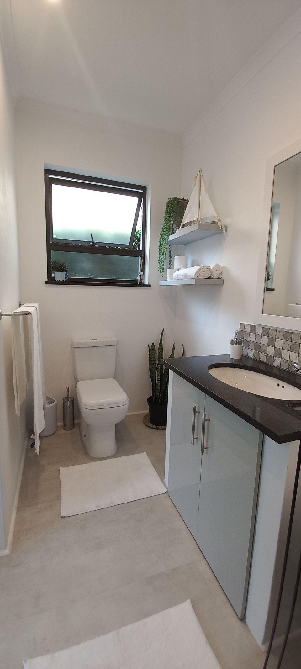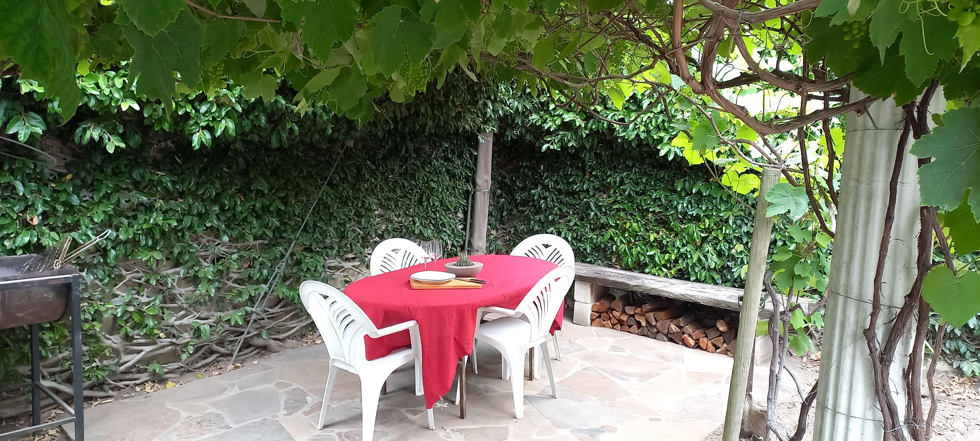 A self-catering cottage is available in George. Ideal location: in the heart of town, close to restaurants, hospitals, beaches, mountain hikes and wine-tasting routes. The most sought-after golf courses in South Africa are just a short distance away. The cottage offers an open-concept kitchen with all the basic necessities. It is cozy and well-equipped with a smart TV including Netflix and Wi-Fi all connected to a solar system. The spacious bedroom has a queen-size bed with an en-suite bathroom.In its private garden, it has a beautiful vinery with braai facilities.