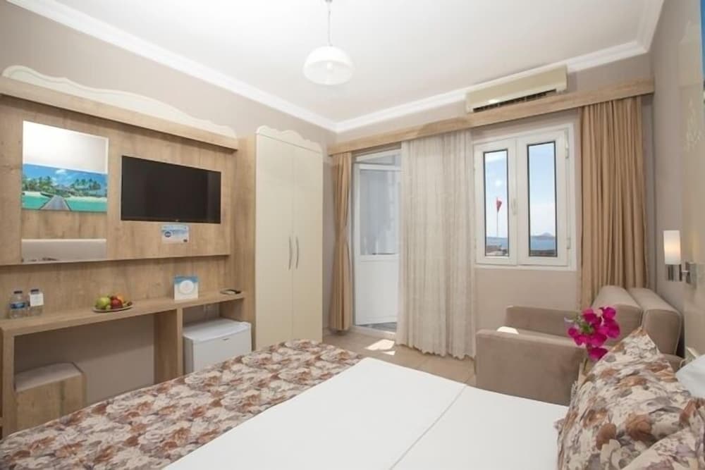 Located in Bodrum, beachfront Akkan Beach Hotel offers an outdoor pool and a private beach area. Wi-Fi is available in all areas and is free of charge. All units of the hotel come with a balcony. Simply decorated, all rooms of Akkan Beach Hotel will provide you with a TV and air conditioning. Featuring a shower, private bathrooms also come with a hairdryer. Some rooms have a sea view and a garden view. At Akkan Beach Hotel you will find a 24-hour reception. Airport shuttle services can be offered at an additional charge. Free public parking is also possible at a location nearby. You can enjoy daily breakfast at the restaurant of the hotel. The on-site restaurant serves a dining menu. There are also restaurants in the surrounding area. The bed and breakfast is 2.2 mi from Bodrum Castle, and Bodrum Cruise Port is 2133 feet away. There are many shops, restaurants and entertainment venues within 1640 feet. Milas Airport is 22 mi away.
