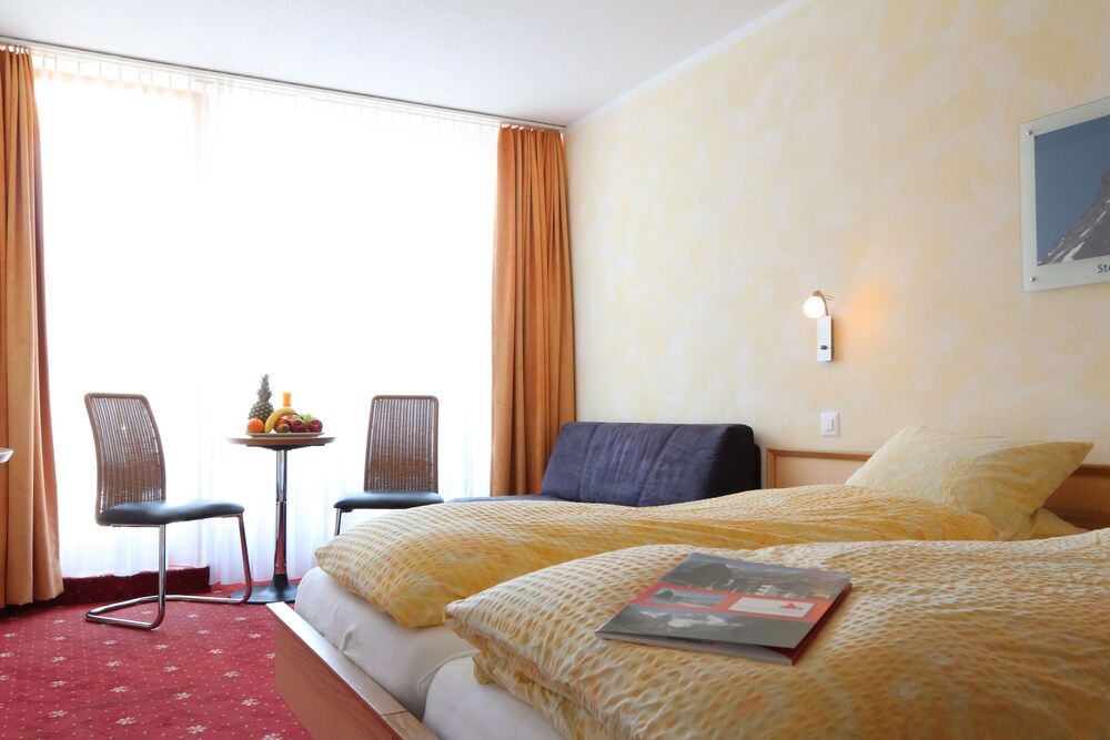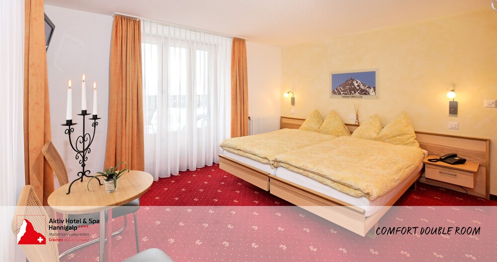 The 3-star Matterhorn Valley Hotel Hannigalp enjoys a quiet location in the car-free southern part of Grächen, about 1200 ft from the center of the village, and features an indoor pool.All rooms feature a flat-screen TV, free Wi-Fi and a private bathroom including a hairdryer.Apart from the pool, there are various other spa facilities like a sauna, a jacuzzi and a solarium.In summer and fall you can make free use of the tennis court, the ping-pong table and the mountain bikes. E-bikes are available as well as of summer 2011.The restaurant of the Hannigalp Hotel serves delicious Swiss and international cuisine and features a kids' corner.