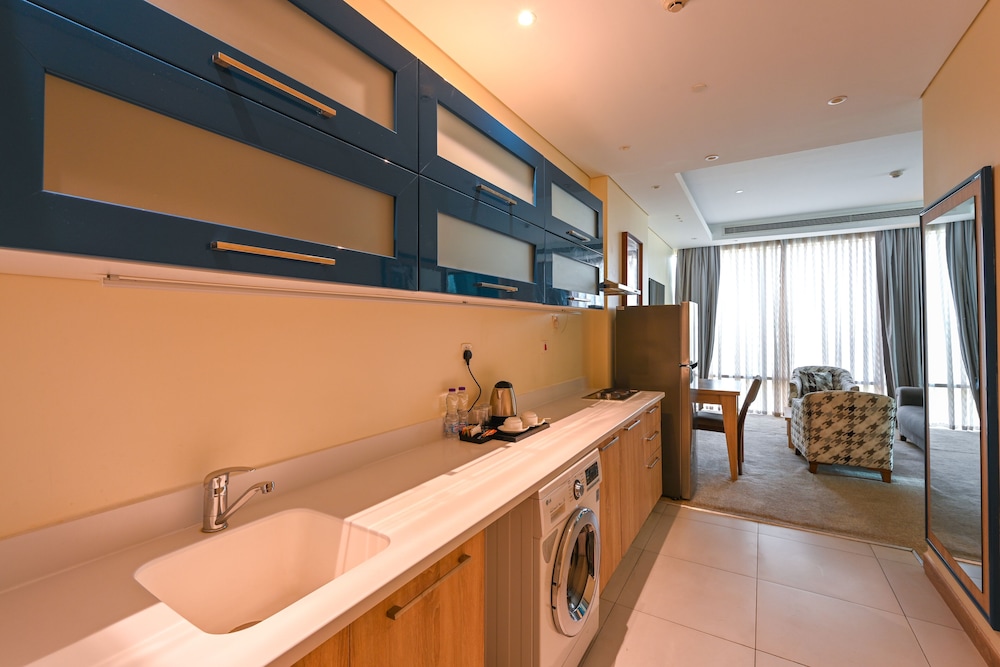 This lovely Hotel can be found in Doha. A total of 119 guests rooms are available for guests' convenience. Both wired and wireless connections are available at Al Mansour Suites. Visitors may contact the reception desk any time during the day. Ideal for families travelling with children, Al Mansour Suites offers some accommodation units including cots on request for the little ones. Guests with reduced mobility can stay at this wheelchair-accessible accommodation, which includes some disability-friendly guests rooms. Al Mansour Suites is not a pet-friendly establishment. Moreover, those travelling by car may make good use of the parking facilities. The property's dining venues serve a selection of flavourful dishes and beverages. Visitors may take advantage of the property's catering.