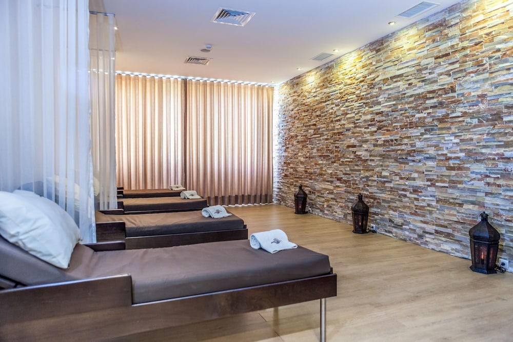 Albufeira Sol Hotel & Spa is a modern 4-star hotel with bright rooms featuring balconies. Situated in Areias de São João it offers an outdoor pool restaurant and is a 10-minute walk from the beach.The rooms at Albufeira Sol Hotel & Spa are decorated with neutral colours and wooden furniture. All rooms have a full bathroom equipped with hairdryer and amenities air conditioning telephone LCD satellite TV with 30 channels safe tea facilities fridge microwave and balcony. Free WiFi is available throughout the property.The Hotel's restaurant serves local Portuguese dishes as well as international cuisine. Throughout the day in addition to the main meals there are snacks available at the Pool Bar.Guests can enjoy the occasional evening entertainment such as live music dancing and karaoke at the bar. The new SPA area is available at an extra fee and has a contemporary design. It includes a sauna hot tub Turkish bath gym hairdresser massage room relaxation and beautician.Popular local beaches of Oura and Santa Eulália are just 1 km from the Albufeira Sol Hotel & Spa and Albufeira’s city centre is 3 km away. The unit is a 5-minute drive from the main entertainment area of Albufeira the lively Strip with plenty of bars clubs restaurants and shops. Balaia Golf Course is 2 km away.