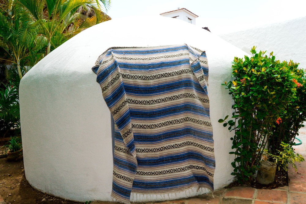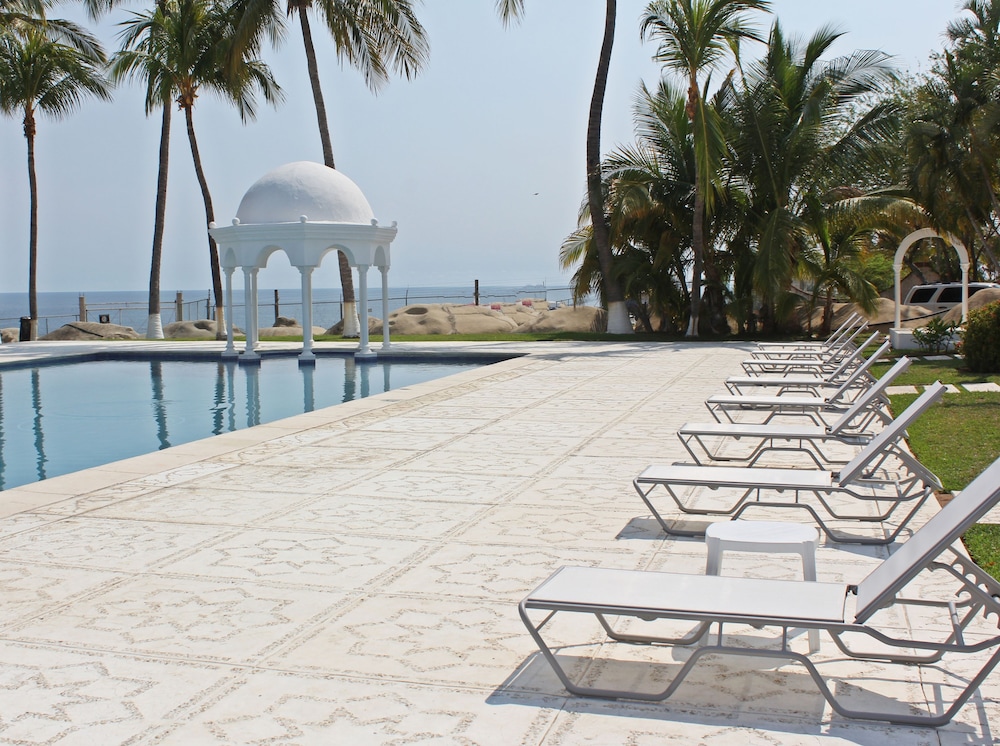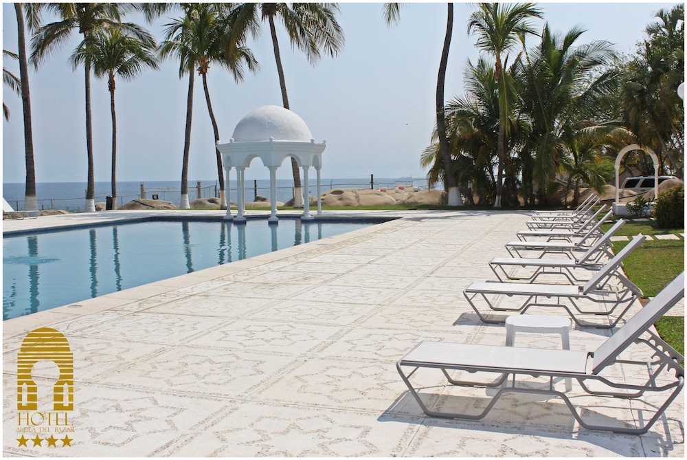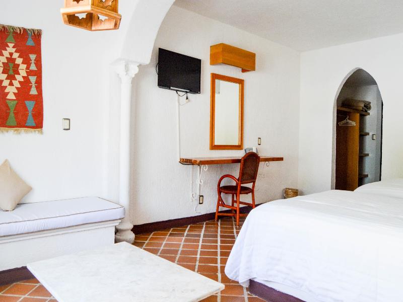 This hotel lies within a few paces of Bacocho Beach, around 10 minutes from the historic resort centre and approximately 5 minutes from the international airport.//Built beside Bacocho Beach on the coast in Puerto Escondido, this hotel preserves its entirely Arabic style whilst the interior décor hails back to the Moriscos. Renovated in 2005, the air-conditioned complex comprises a total of 47 spacious rooms spread over 2 floors. Guests have access to the hotel gardens and terrace and amongst the facilities count a 24-hour reception desk with a safe and a currency exchange bureau, high-speed wireless Internet access, medical assistance, a travel agency, a car hire service and room and laundry services. There is car parking for those arriving by car and the hotel affords wheelchair access. Mandil restaurant offers a natural ambience, amidst the gardens, and the Caravanserai bar features Arabian details. Those guests wishing to celebrate their wedding here should please contact the hotel directly regarding arrangements.//Offering an Arabian style, pleasant colour schemes and views out over the gardens or sea, the spacious rooms each come with 2 double beds, 2 sofa beds, hammocks, a lounge, air conditioning, an alarm clock, satellite/ cable TV, a ceiling fan, a drinking water system, a smoke alarm, a fire extinguisher and a telephone. All rooms also have a work area with an Internet connection and a terrace. In the bathroom is a shower, a make-up mirror and a selection of toiletries.//Leisure options include a swimming pool with a children's paddling area in the outdoor area where sun loungers and parasols have also been laid out. There is a spa to make use of and pre-Hispanic baths known as temazcal as well as a massage service and steam baths. Guests may participate in the aerobics and gym sessions or try out a range of water sports such as jet skiing, surfing, sports fishing and diving. It is possible to go horse riding.