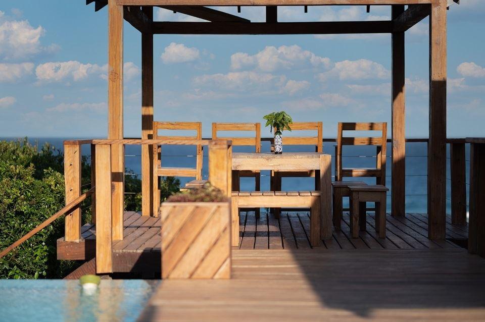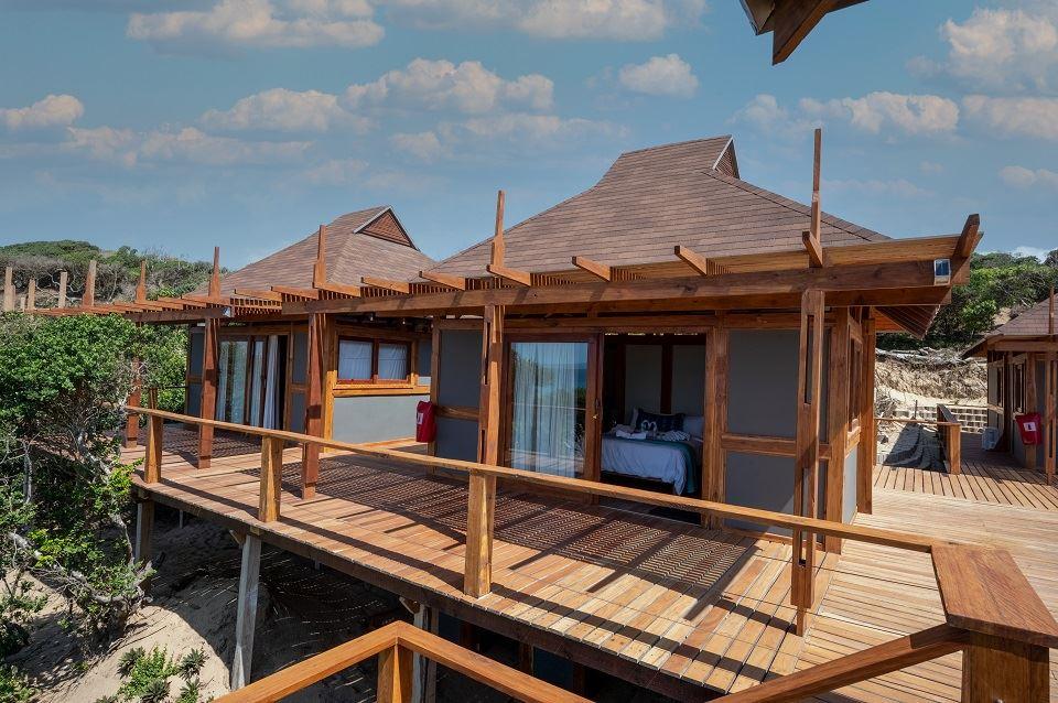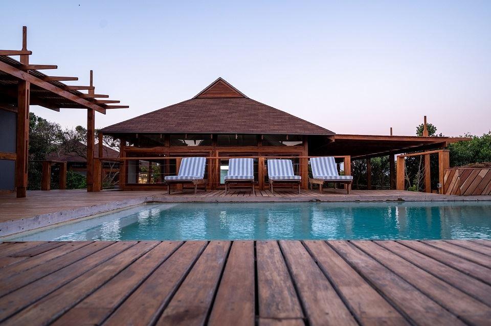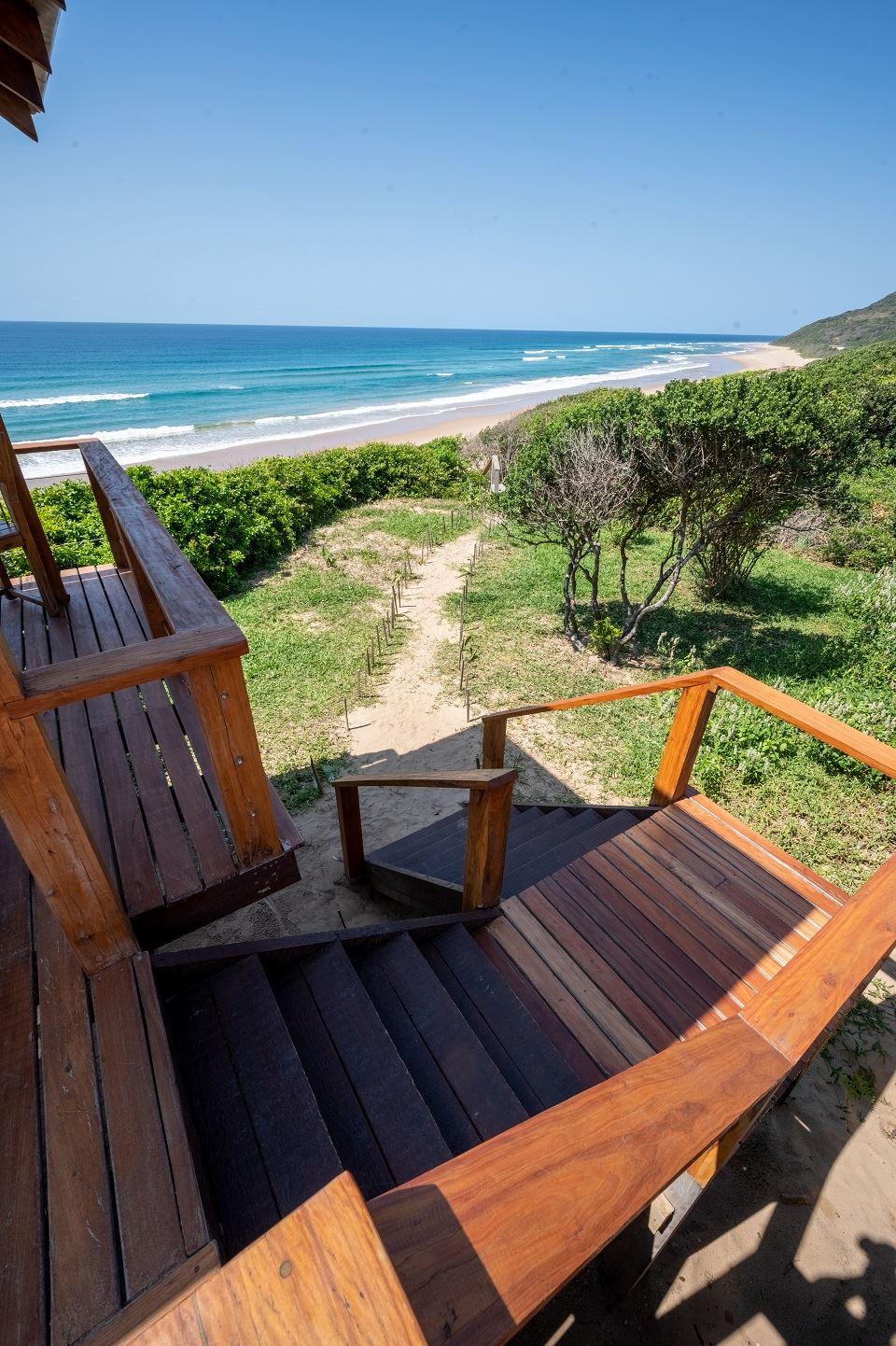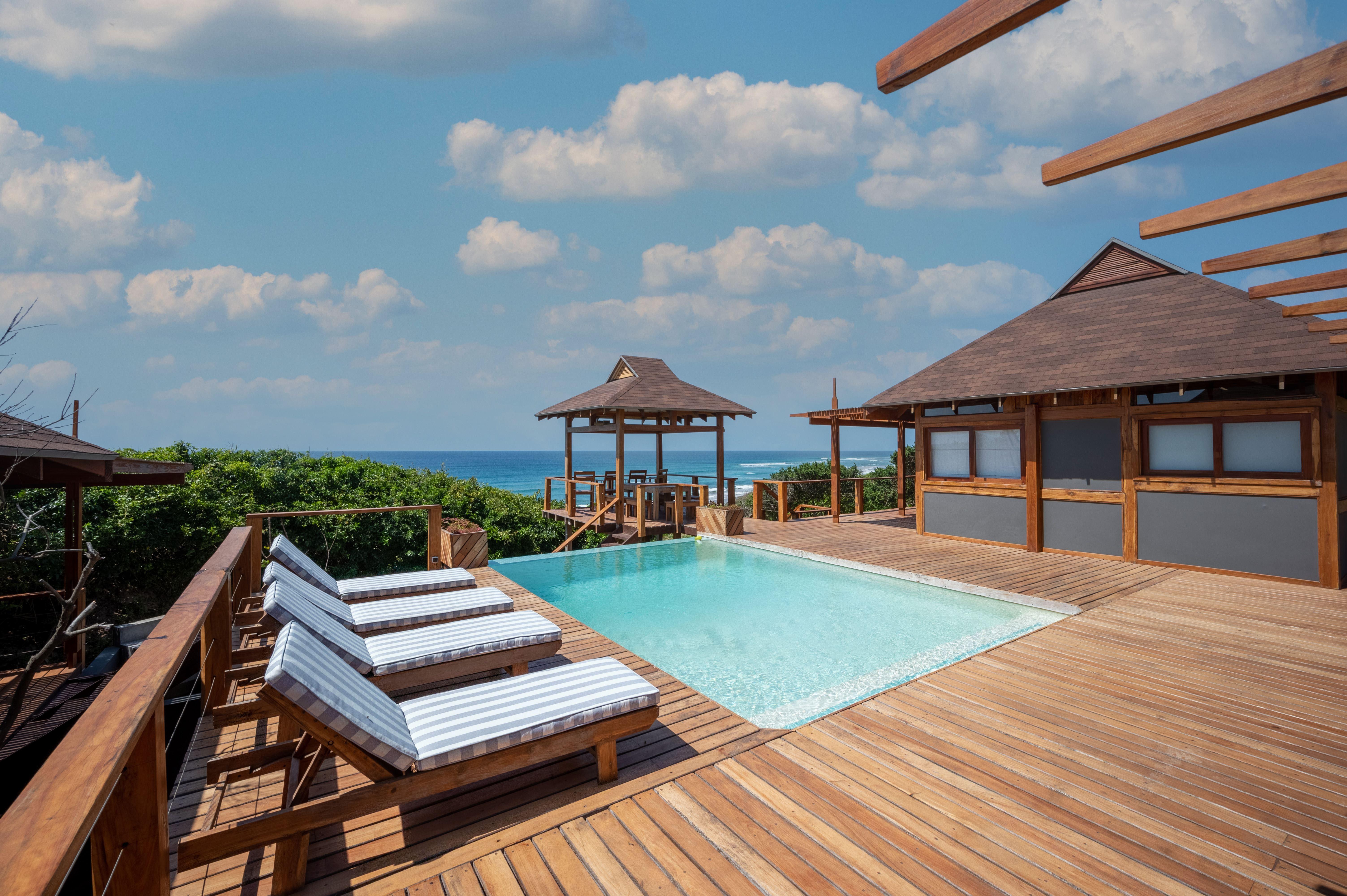 Only a 40-minute drive from the Kosi Bay border, along sandy roads, you will find Aloha Estate. Situated on the beach in Ponta Mamoli, Mozambique. House number 22 is privately situated and on the beach.The house is on one level and has a 'lodge type' layout, in the sense that the entire house consists of four separate buildings, all sea-facing and all open up onto the wooden deck around the swimming pool and gazebo area. There are 4 buildings of which 1 building is the kitchen, TV lounge and dining area, the remainder 3 buildings are the 4 bedrooms, all bedrooms are en suite. Bedro