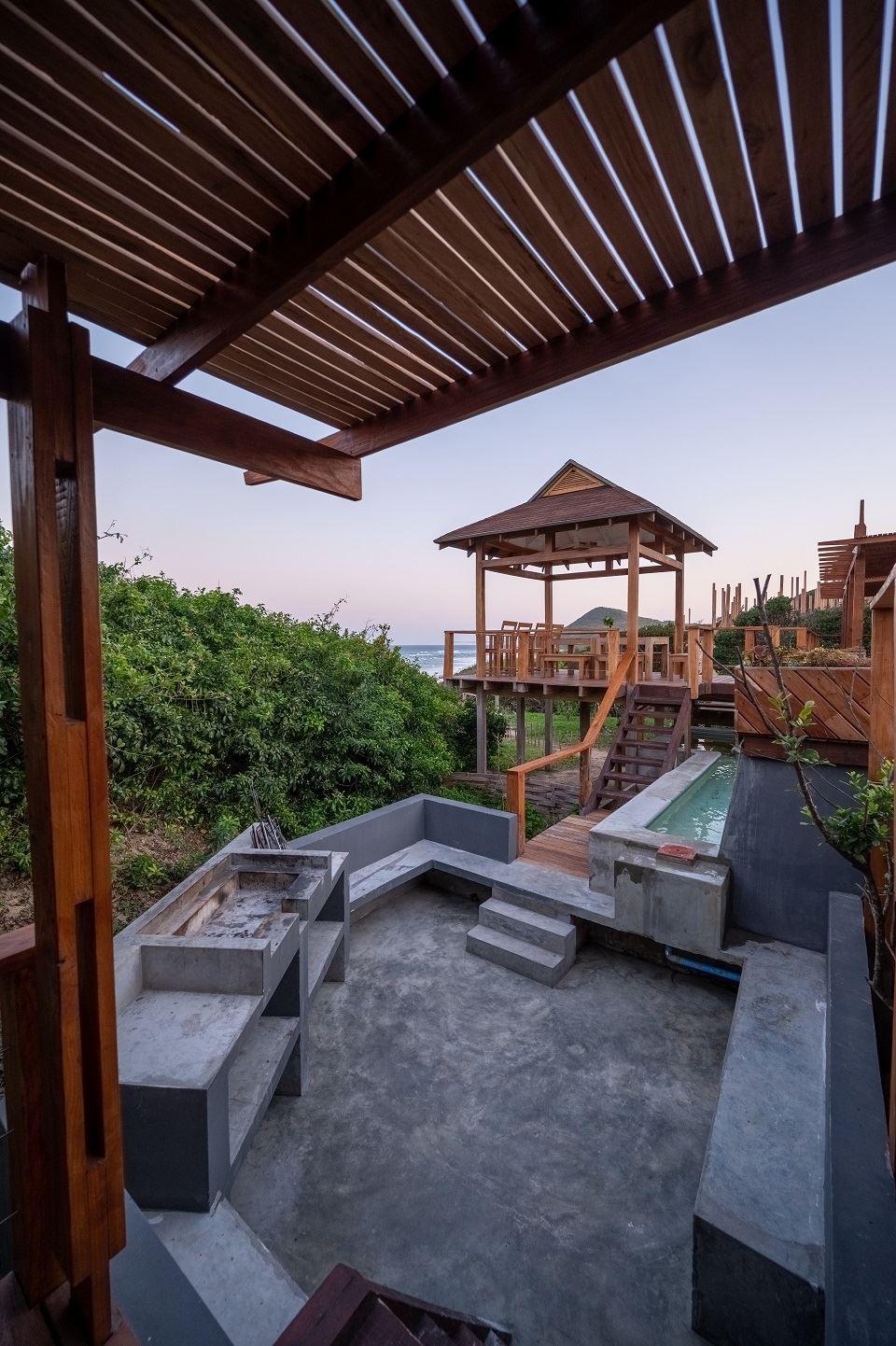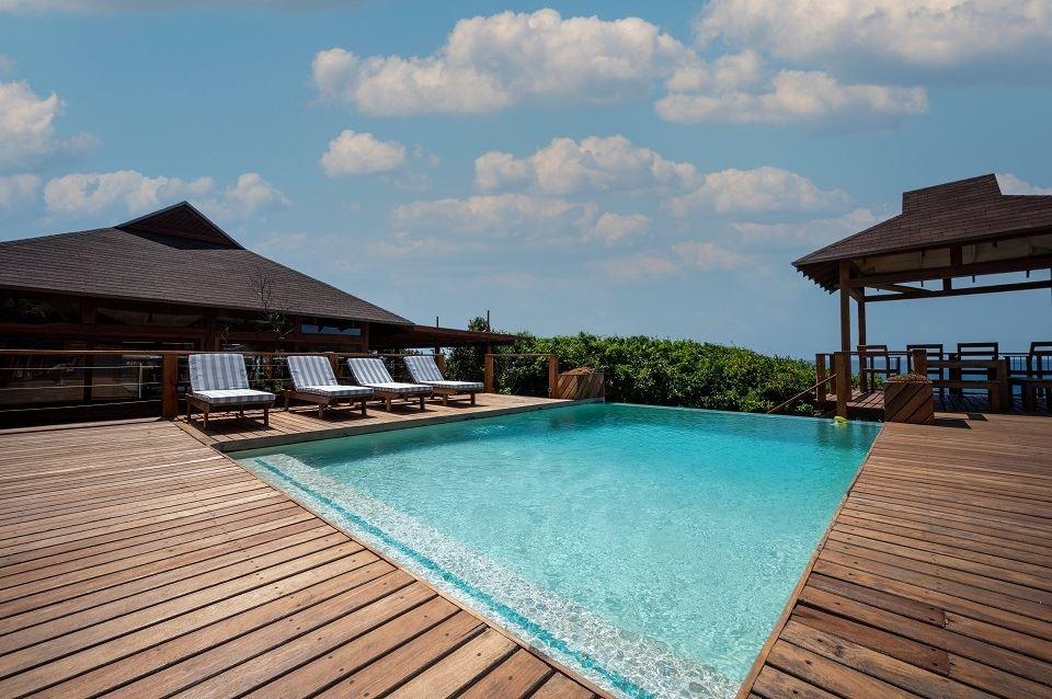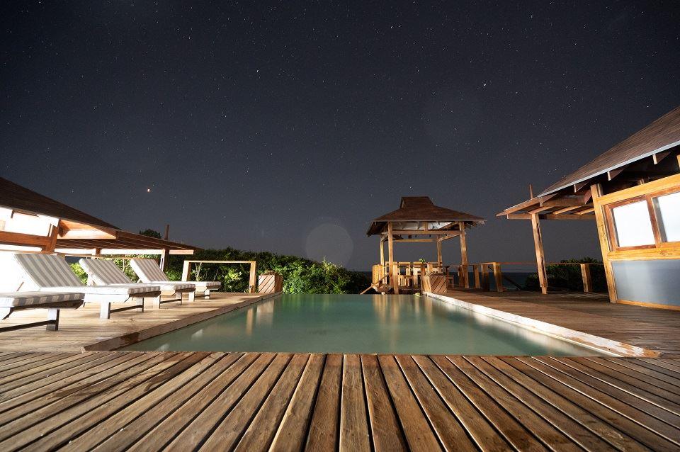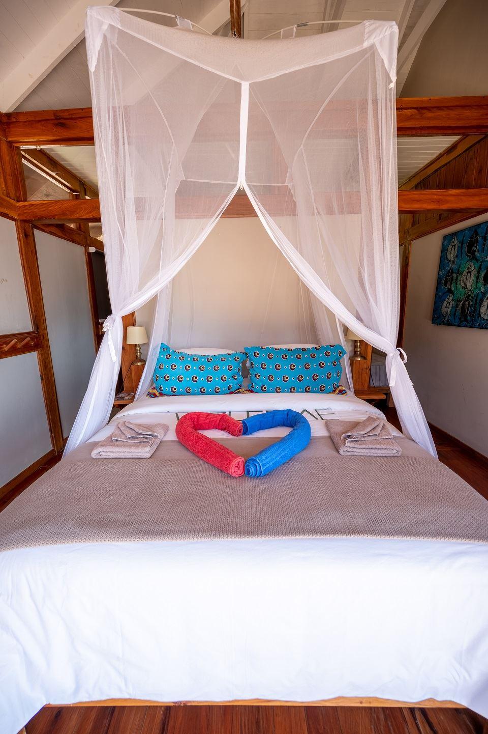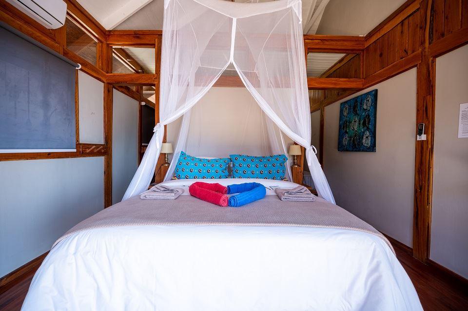 Only a 40-minute drive from the Kosi Bay border, along sandy roads, you will find Aloha Estate. Situated on the beach in Ponta Mamoli, Mozambique. House number 22 is privately situated and on the beach.The house is on one level and has a 'lodge type' layout, in the sense that the entire house consists of four separate buildings, all sea-facing and all open up onto the wooden deck around the swimming pool and gazebo area. There are 4 buildings of which 1 building is the kitchen, TV lounge and dining area, the remainder 3 buildings are the 4 bedrooms, all bedrooms are en suite. Bedro