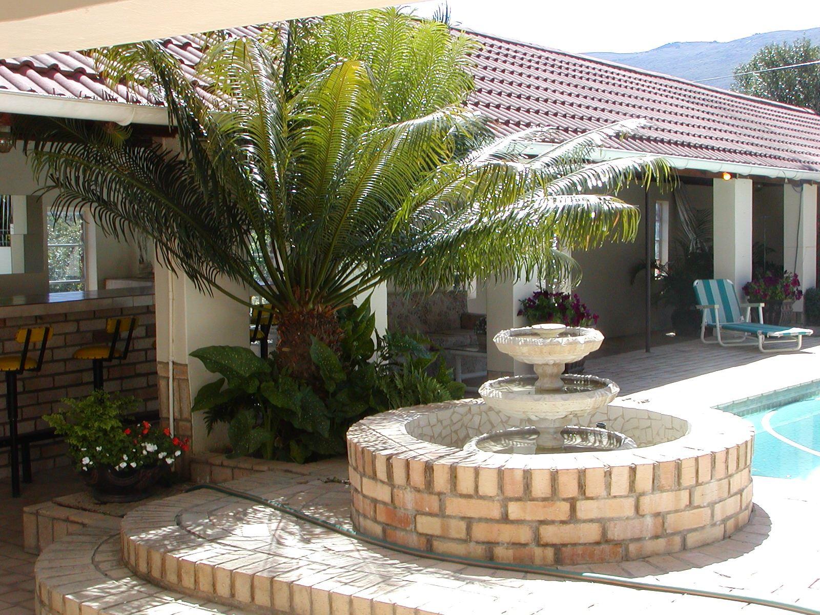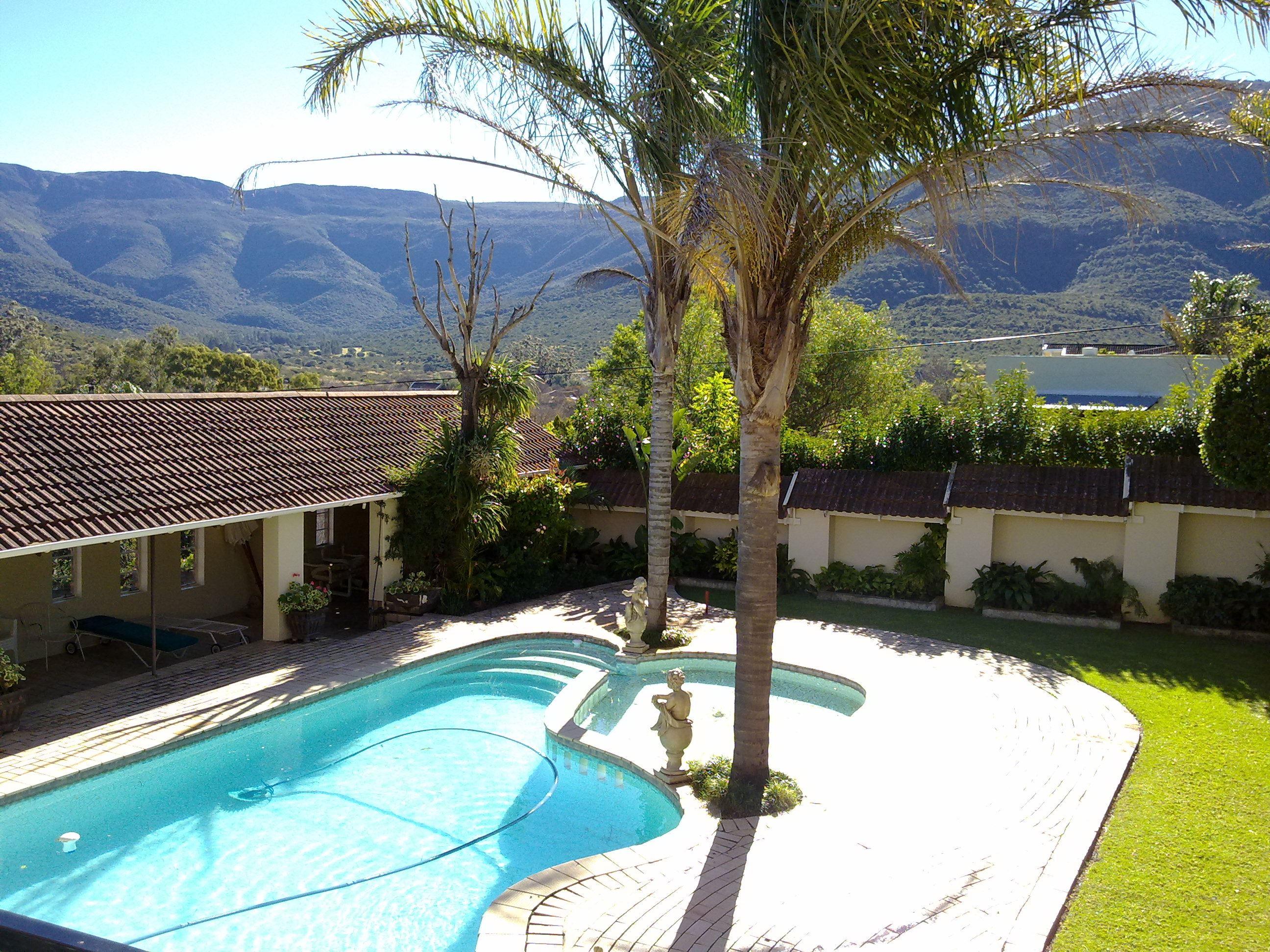 Offering warm hospitality with spacious rooms overlooking the Bosberg Mountain, the Aloma house is a country style guesthouse situated in a quiet part of town. At Aloma House you can relax and unwind, walk around the beautiful gardens, sit and enjoy a book or cold beverage around the pool, or have a typically South African braai. Our big sitting room offers satellite TV and provides a great space to catch-up on the news or watch the big game.One of the many great features include a lovely lapa area with braai and bar, situated around a beautiful blue swimming pool with