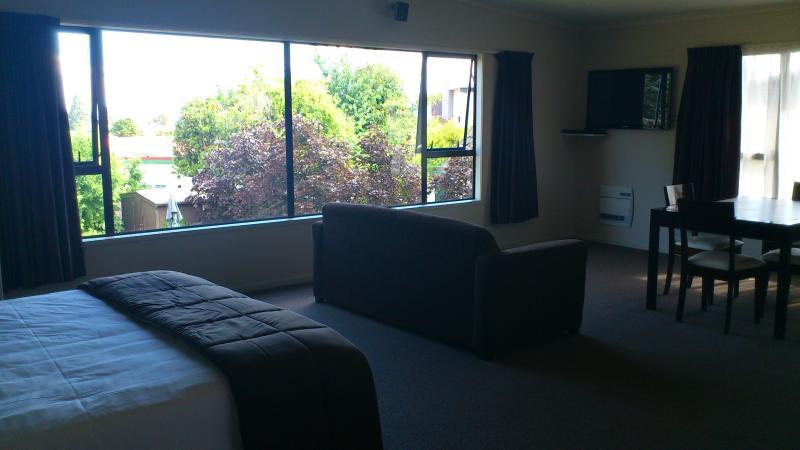 Taupo's newest motor lodge and conference centre is just a few minutes walk from the lakefront, shops and restaurants. Offering a range of modern, upmarket 1 bedroom suites and studios, most featuring spa baths. FREE wireless & wired internet in all units. 2 studios offer access facilities. All units contain kitchens with cooking facilities. SKY TV and DVD players. A complimentary DVD is available for your viewing leisure. Ground floor units open onto private courtyards for outdoor dining, some also feature BBQ's. Underfloor heating keeps you toasty warm in winter. Air-conditioning keeps you comfortably cool in summer. BBQ garden area. Email cafe for guests travelling without laptop. On-site guest laundry. A large free off-street carpark is available, adjacent to units.