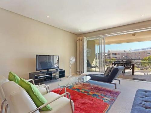 This luxurious apartment is located in the heart of Cape Town's famous V and A Waterfront, within walking distance of the CTICC and the Waterfront's multitude of shops, restaurants and a cinema.The apartment is fully furnished and equipped with a large patio for entertaining. The kitchen is equipped with a washing machine, a tumble dryer, a dishwasher, an oven, a stove and a microwave.The bedroom has a king-size bed which can be converted into two single beds. The lounge has two sleeper couches, satellite TV, and a Hi-Fi with a CD player. The apartment is serviced once