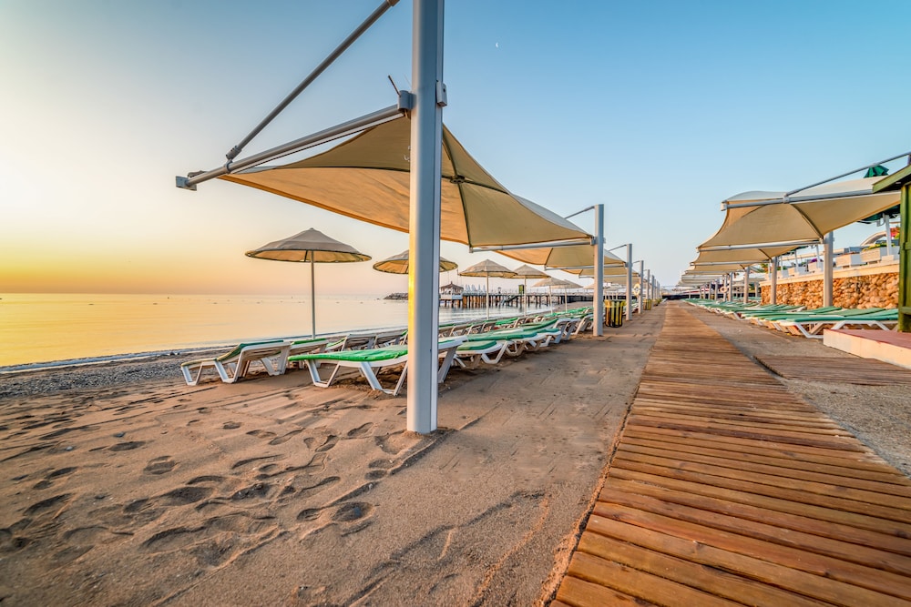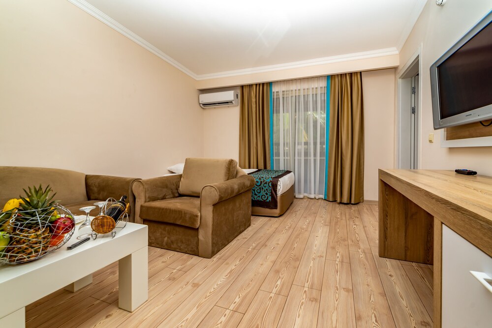 Located near Taurus Mountains Amara Club Marine features a 550 m² pool and 3 hot tubs. It boasts a 250 m² private beach fitted with deck chairs and parasols.Renovated in 2018 all rooms are decorated in beige colours and feature a comfortable armchair and flat-screen TV in the living area. Each one has private balcony with sun loungers.Amara Club Marine’s renovated à la carte restaurant has panoramic ocean views and serves regional specialties indoors or out on the terrace. Cocktails and aperitifs can be enjoyed at the bar.At Amara Club guests can take part in volleyball tennis or make use of the well-equipped fitness centre. In the evenings the hotel hosts beach parties disco nights and live music shows. Amara Club Marine is less than 3 km away from Beldibi town centre.