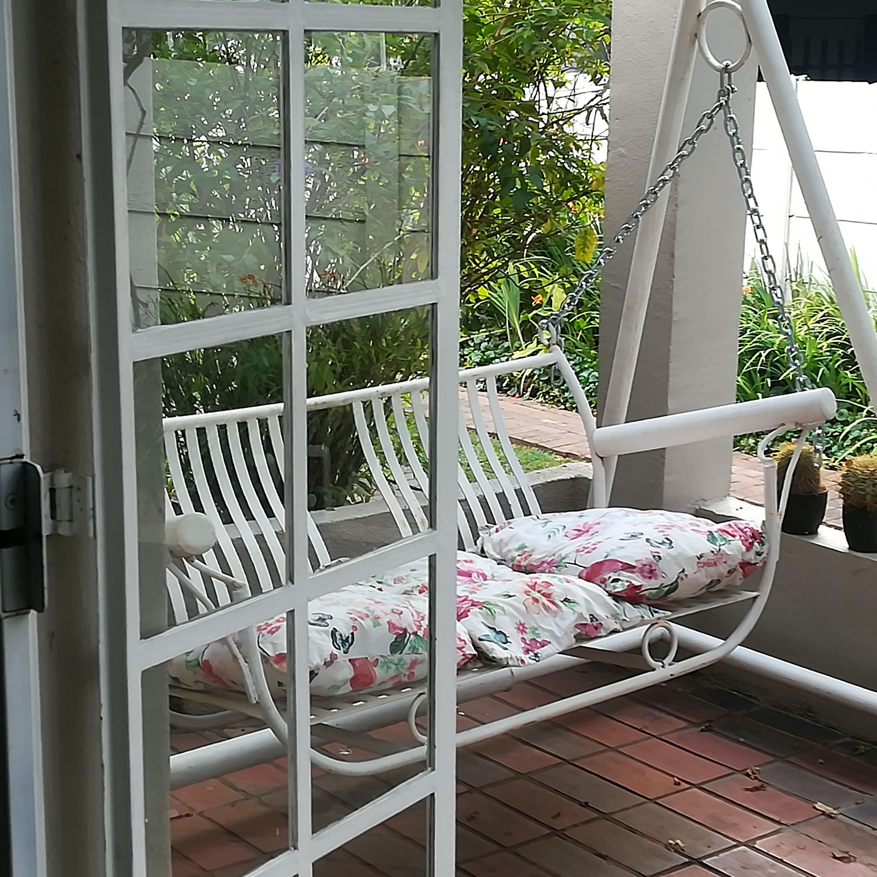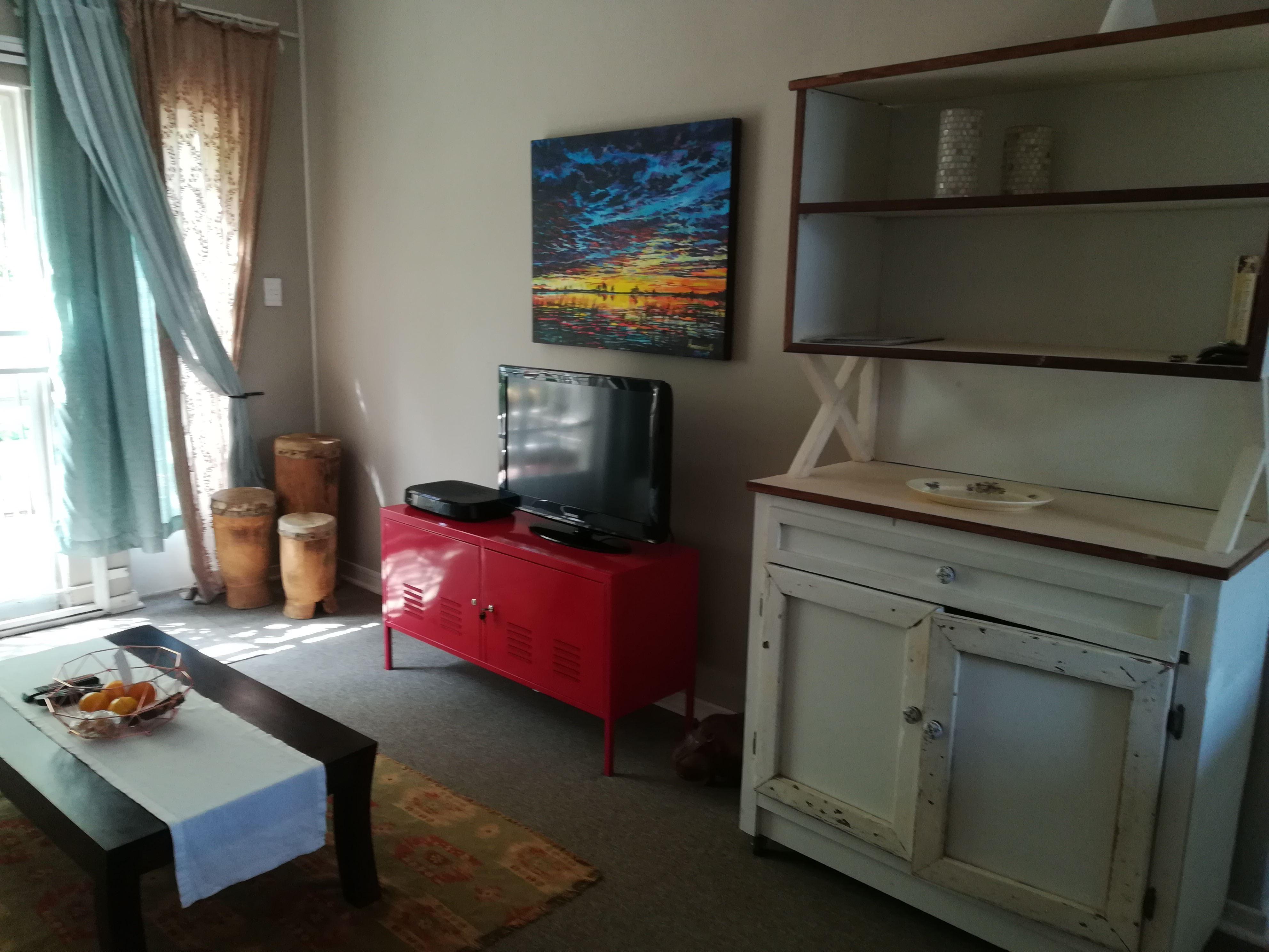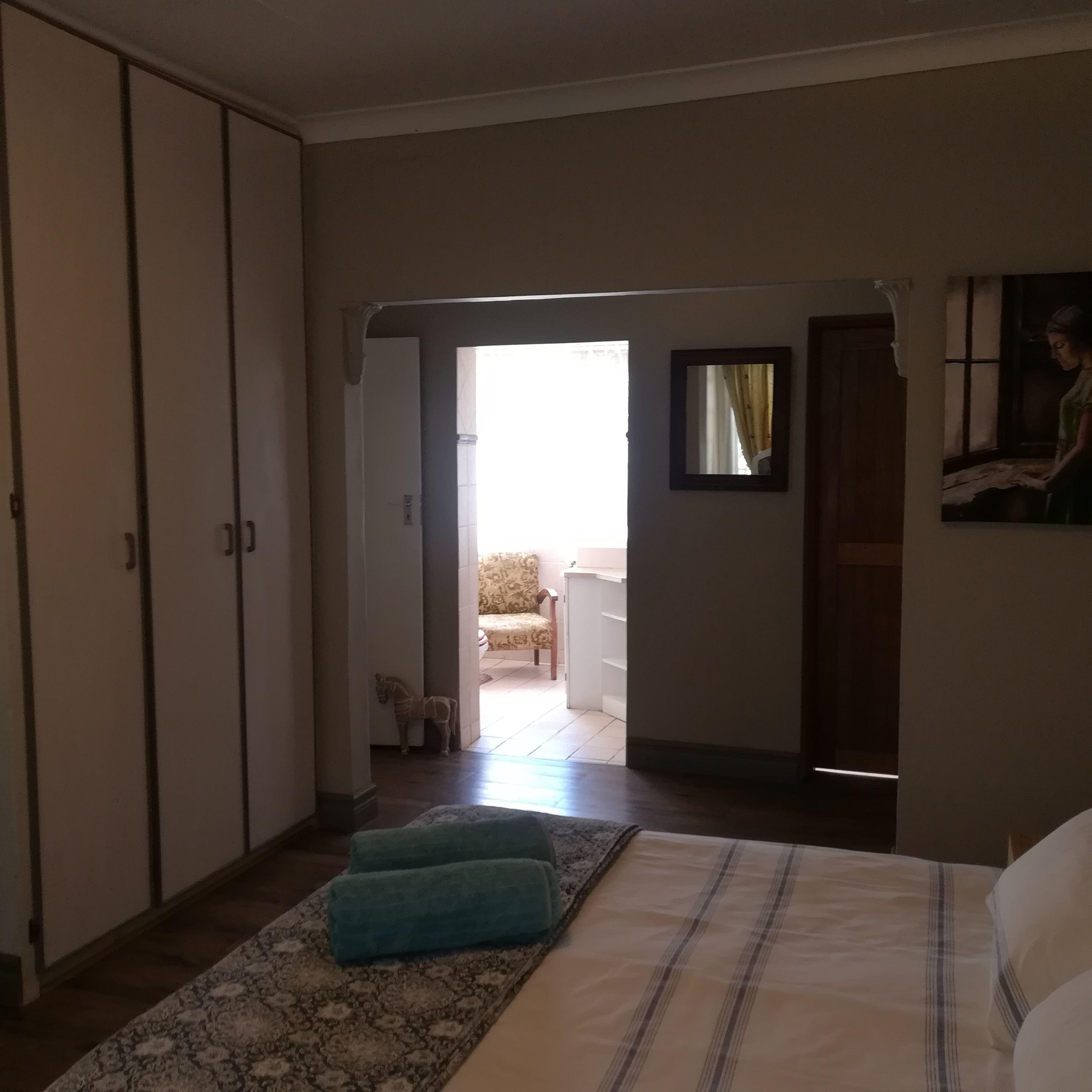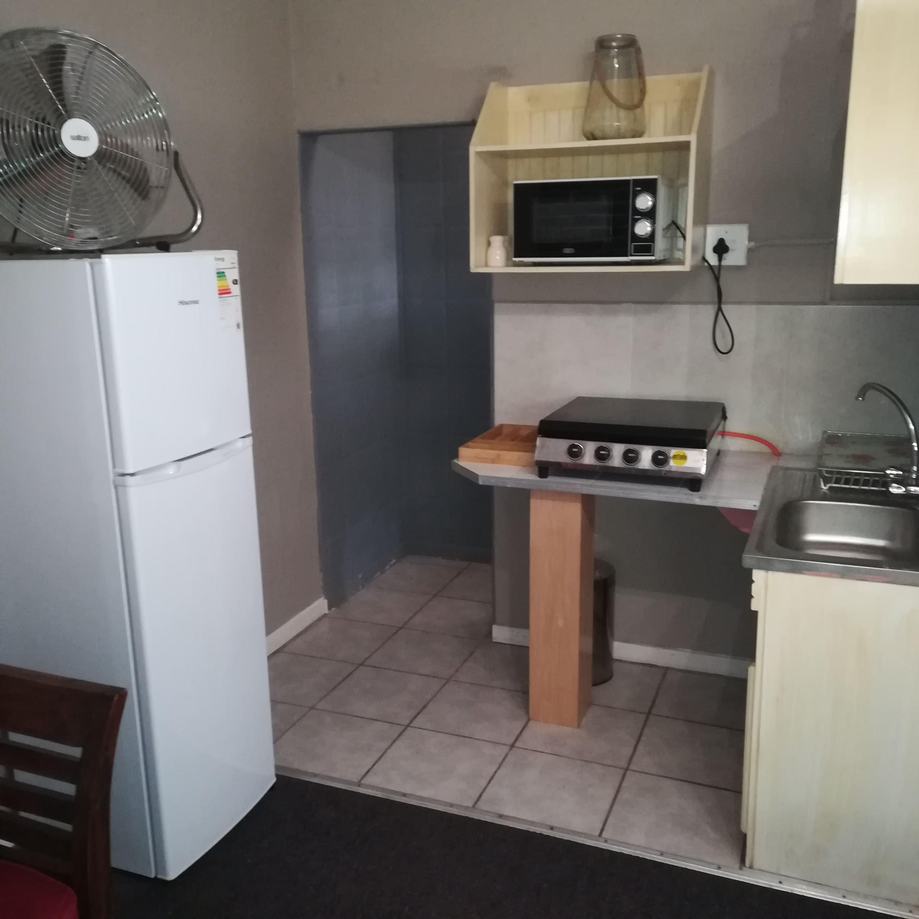 There is one shared bathroom in Safe Haven with a shower and a bath. The lounge area has DStv and Wi-Fi. The fully-equipped kitchen also has laundry facilities and guests have access to a patio with a garden and braai facilities.