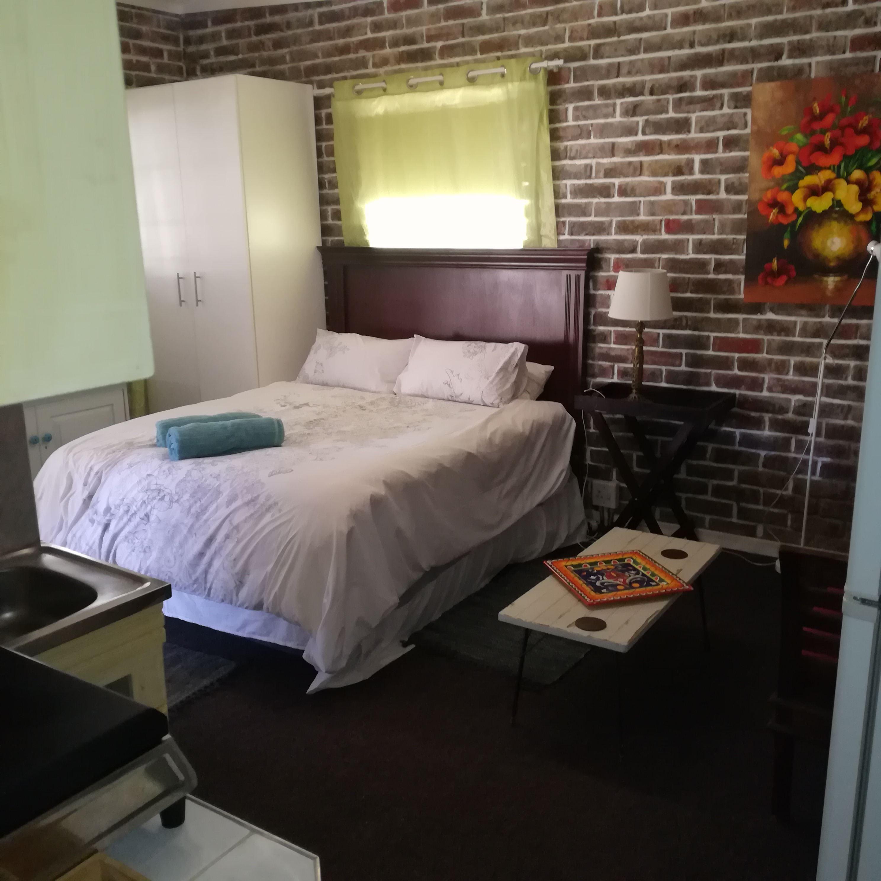 Monique has a double bed with an en-suite bathroom equipped with a shower. vAmenities in this self-catering unit include Wi-Fi, a fan, bar fridge, hot plate stove, microwave, sink area and tea and coffee facilities. Guests have access to a patio leading to a garden with a seating area.