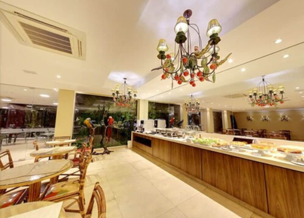 The Amazon Plaza Hotel, a new hotel in Cuiabá, has a structure carefully prepared to provide you the best comfort and customized attention. You will be able to enjoy all our environments and services. The guest rooms are equipped with broadband Internet access, 24-hs room service, air conditioning, TV, minibar, canned music, and telephone, just to name a few. Besides, it has parking lot, computers with Internet, laundry service, conference rooms, American bar with panoramic views, and swimming pool with cascade, among others.