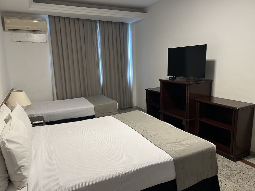 The country house is located in Copacabana, beside the metro station and just few blocks away from the most famous beach in the world. The Rio de Janeiro city centre is approximately 18 km from the hotel, and attractions such as the Christ the Redeemer monument, Tijuca Forest and the Botanic Gardens are around 20 km away. The RioSul shopping centre is roughly 5 km from country house and the Sugar Loaf is 7 km. The bus and train stations are 30 minutes and 15 minutes by car, respectively.Renovated in 2009, the air-conditioned residence offers 78 rooms in total and welcomes guests in a lobby with currency exchange facilities and lift access. Further facilities include a TV lounge, a bar and restaurant, conference facilities and a laundry service. For an additional fee, guests may also make use of the WLAN Internet access, room service and a car park and garage.The apartments are equipped with an en suite bathroom with shower and hairdryer, a double bed, cable TV, minibar/fridge, telephone and a private safe. A radio, Internet access and individually regulated air conditioning also feature in all guest rooms as standard.The 4-star hotel has a nice terrace with an outdoor swimming pool, sauna, gym and great panoramic views of Copacabana Beach, the Christ and the Sugar Loaf. Guests may also relax by the poolside snack bar or on the sun terrace using the sun loungers and parasols provided. Parasols are also provided on the nearby sandy and rocky beach.Besides the delicious buffet-style breakfast, guests can enjoy a menu full of variety in the restaurant.