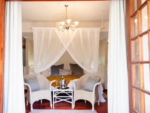 The romantic open-plan bedroom and lounge area features a large stone fireplace and the bathrooms have either an original Victorian bath or a spa bath. Bathrooms are spacious and feature overhead heaters, large showers with martini seats, and a separate toilet.