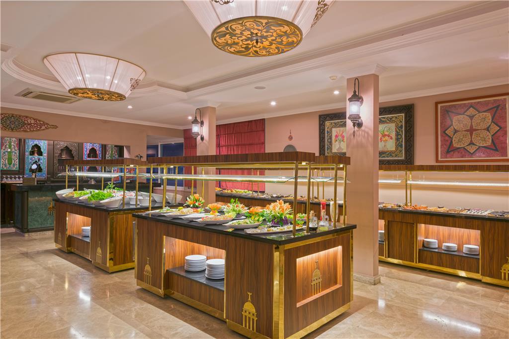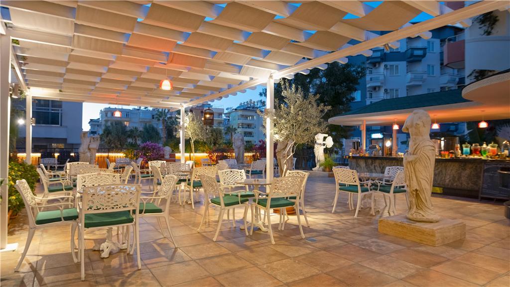 This magnificent hotel enjoys a prime location in the sea front of Alanya. Visitors will be enchanted by fabulous natural landscapes with the Taurus Mountains in the background. The city is rich in historical attractions including the Ataturk House Museum and the Alanya Castle together with the Byzantine era Church of Saint George. Guests may also visit numerous gorgeous beaches and nearby waterpark. The establishment boasts spacious and sumptuously appointed rooms offering an oasis of peace and tranquillity. The glamorous on-site restaurant invites guests to savour Turkish delights and international cuisine. Children can let off steam in the paddling pool or at the playground area, while adults have a cooling dip in the outdoor pool or enjoy a drink from one on the 3 bars. The hotel also features impressive leisure facilities including a fitness centre, Turkish bath, sauna, hair dresser, table tennis, mini golf as well as meeting rooms.