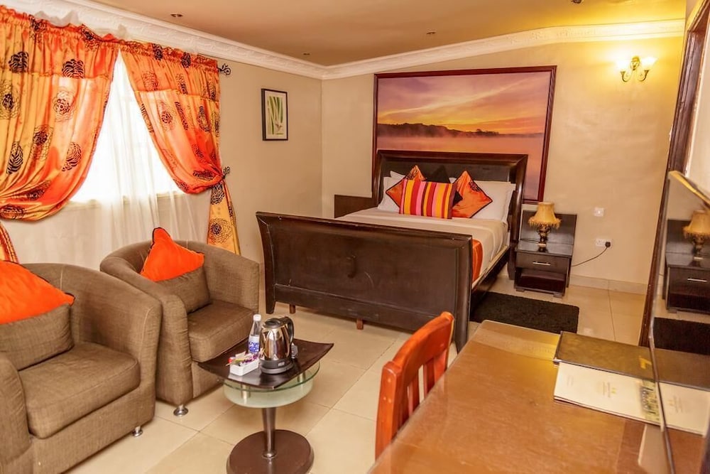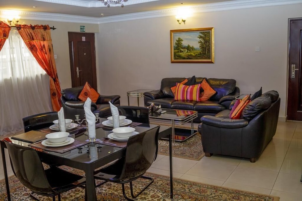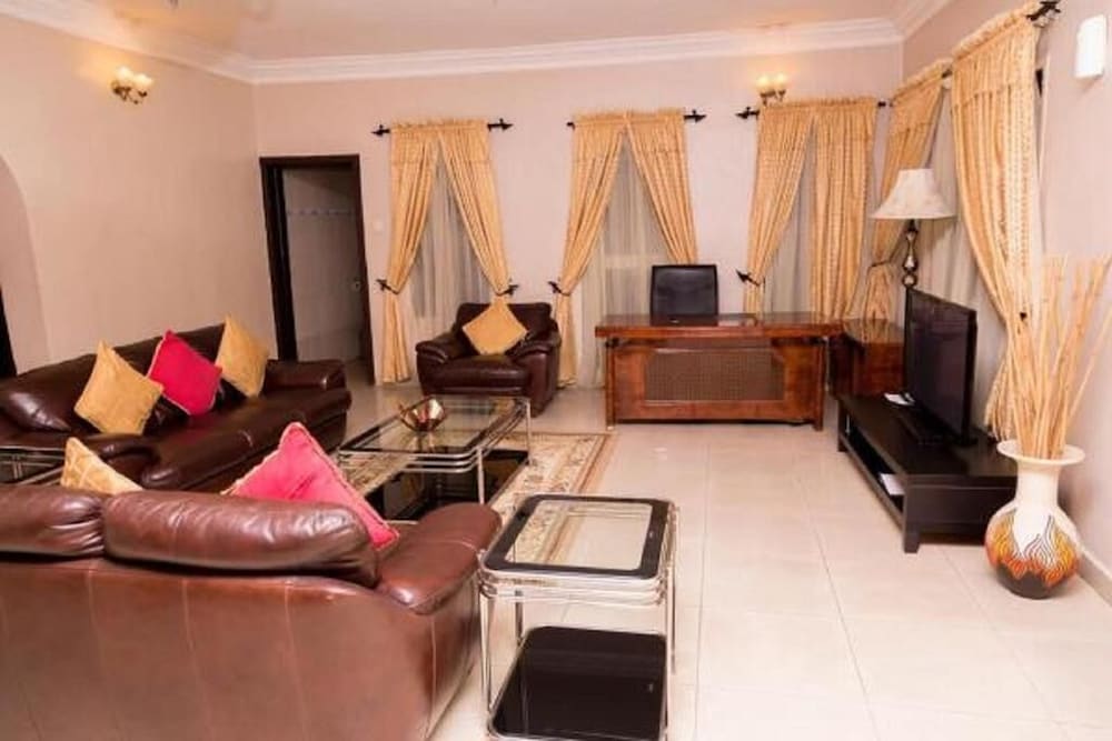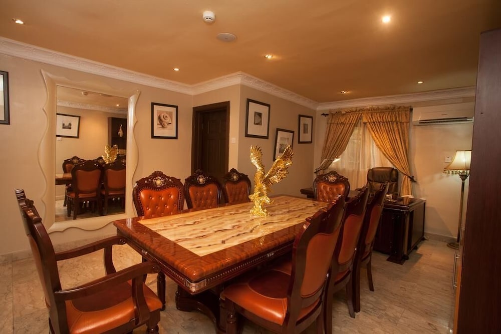 Apartment Royale is a luxury hotel located in Ikeja, just a 15 minute drive from the Muritala Mohammed Airport, Lagos. WiFi is available.The hotel offers spacious and tastefully furnished service apartments which are accessible by the floor lift. Each room is fully air-conditioned and designed with plush leather couches, an ornate persian rug and a glass-top table, a flat screen TV with cable service and a bed with mahogany frames.Its on-site restaurant serves English, continental and Nigerian cuisine which guests can enjoy in the dining room. Kitchen facilities are available with all apartments. The hotel features a sparkling outdoor pool and a gym which is available to lodging guests for free.The hotel has conferencing facilities suitable for corporate retreats, seminars and other public events. On-site parking is available.