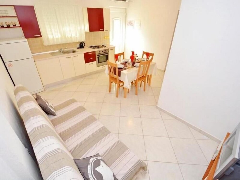 These charming holiday apartments enjoy a peaceful and quiet setting in a residential area only few kilometres from the city centre and old town of Zadar. Guests might take a short stroll to the nearby beach to spend the day lounging in the sun and swimming in the crystal-clear water, or venture into the city for its beautiful, historical churches and fascinating museums, such as the archaeological Museum, the Museum of Ancient Glass and the National Museum. The city's main port also offers ferries to a variety of nearby islands as well as to Ancona, Italy. Here guests can enjoy a relaxing holiday by the sea with the family or friends, as the apartment provides an ideal combination of space and independence. Bed linen and towels are provided free of charge. Guest can take advantage of a free parking place available at the spot and free of charge.