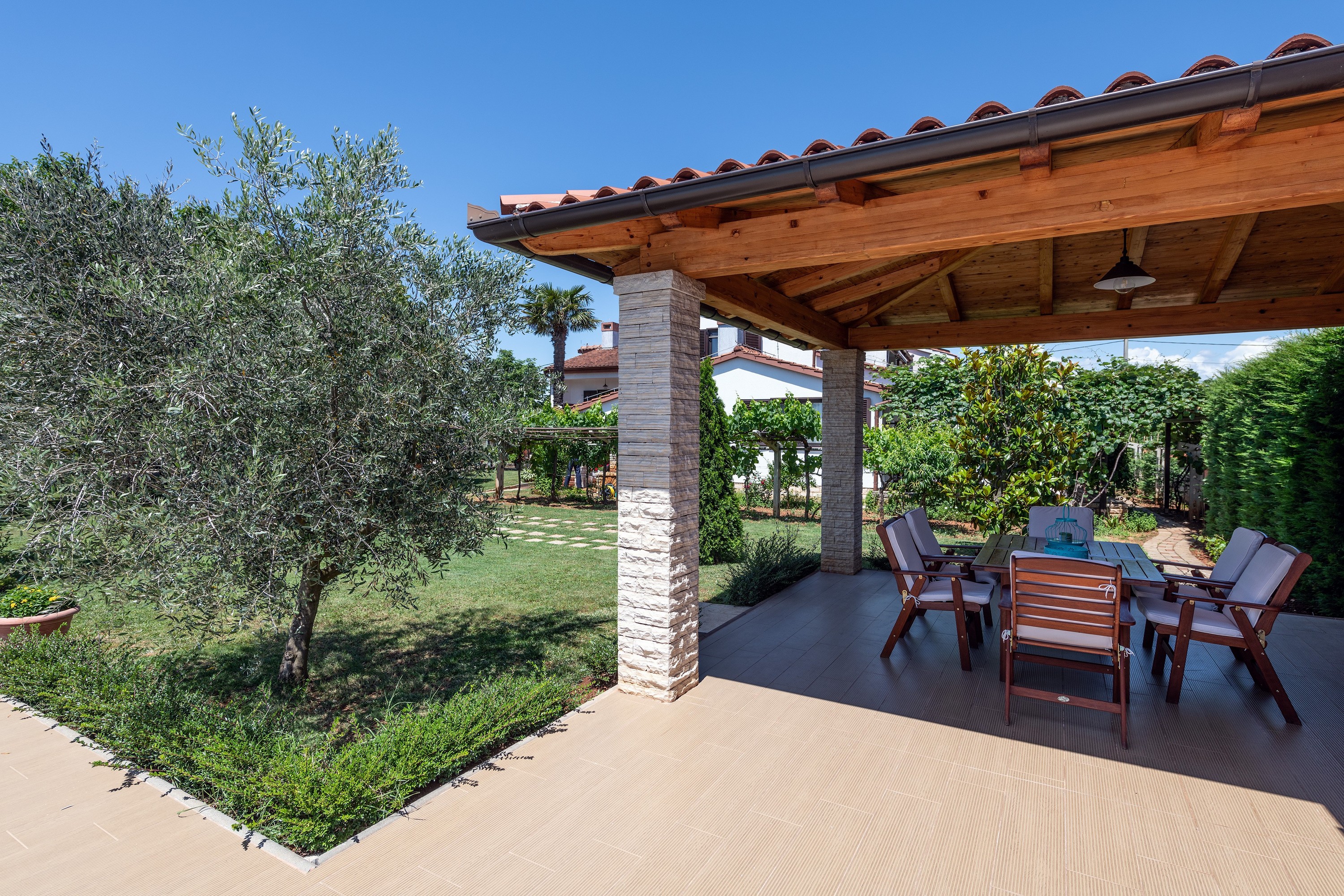Fully equipped and modern apartments in a quiet part of Pula, 2 km from Fa ana. Guests enjoy free parking, wi-fi, children's playground and an outdoor pool. Property is located 2 minutes drive to the beach, 5 minutes to the town center and 3 minutes to Fa ana. The closest airport is less than 10 km distant.Bed linen and towels are included in price.