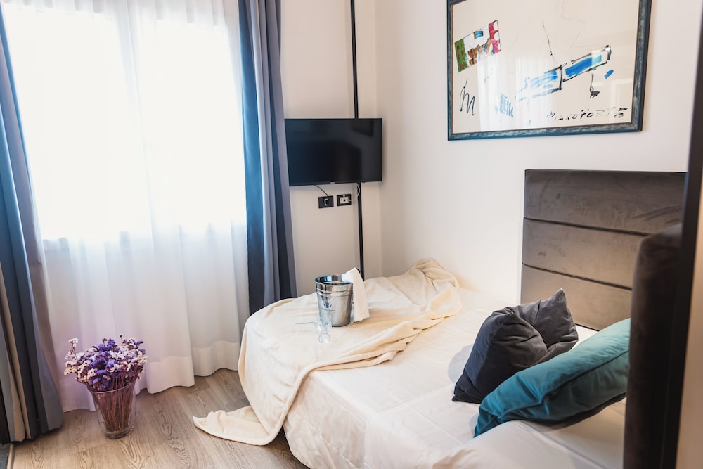 The hotel is situated just a few steps from Prato's main railway station, and is ideally situated for excursions to Florence without the hassle of a car. It is also convenient for guests wishing to explore the historical centre of Prato which is just 500 m, or 5 minutes' walk, away. The Contemporary Art Museum is 2 km away, Florence can be reached in 30 minutes by car and Pisa is an hour from the hotel.The hotel is above all suited to business clients and as such offers all the necessary comforts to make a business trip pleasant and provides a relaxing setting. The 70-room city hotel is fully air-conditioned and offers a lobby with a 24-hour reception and check-out services, a hotel safe, currency exchange facilities, lift access and a games room. There is also a breakfast room and conference facilities, Internet access wi-fi as well as room and laundry services are available to guests. For those arriving by car there is the car park and a garage.The hotel provides elegant accommodation, all equipped with centrally regulated air conditioning and heating, satellite TV, pay-per-view TV, a radio, a minibar, a direct dial telephone (even in the bathroom), orthopaedic beds and sun-shades. Additionally, the rooms feature en suite facilities with a bathtub or shower, a hairdryer, Internet wi-fi access, tea and coffee making facilities, a king-size bed and a safe. The rooms also feature a balcony or terrace.Guests can work out in the gym or they might want to enjoy a health-restoring hydro massage.The restaurant offers a rich buffet breakfast.