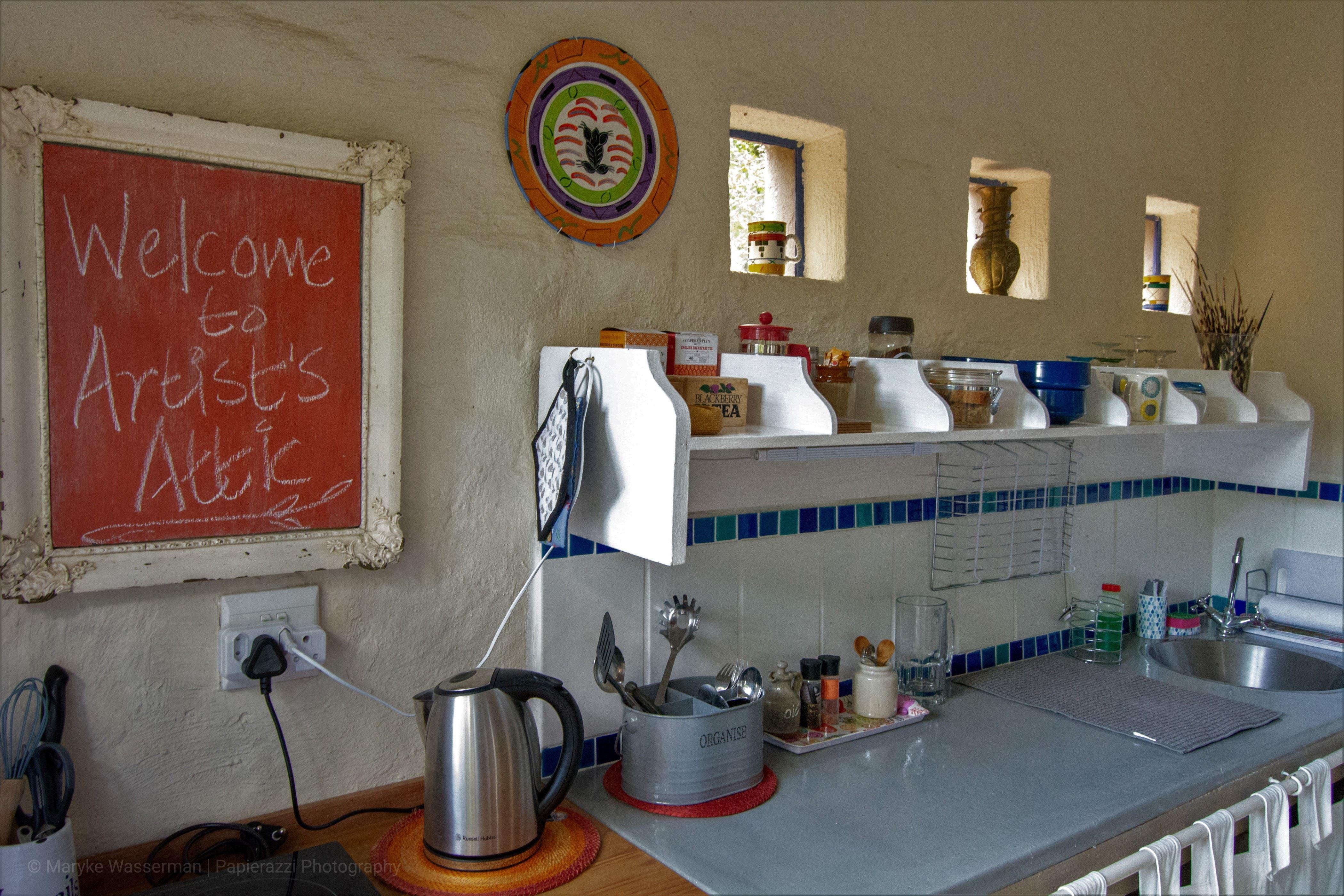Artist's Attic is a self catering cottage in a quiet neighborhood surrounded by a nature reserve. The cottage has an upstairs en- suite bedroom with queen size bed. It opens up onto a balcony overlooking a garden and a view of the surrounding valley and hills. Downstairs is a lounge with 2 sleeper couches and a well equipped kitchenette with microwave, induction plate and fridge. It is only 5,4 km from the Nelspruit city centre and 1,8 km from the closest shopping centre. Kruger Park Malelane Gate is 66km away. It is an ideal stop over for a family or couple en route to Kruger or on business f