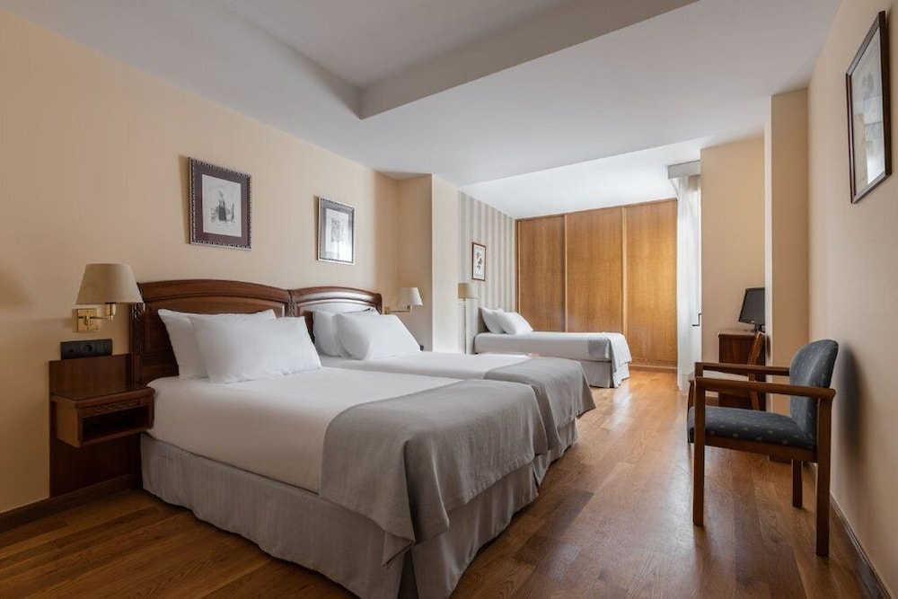 This hotel is located in the city centre, directly on the Plaza del Ayuntamiento. The nearest public transport links are located just 300 m away.Opened in 1998, this 3-storey hotel comprises 26 double rooms and 6 single rooms. Facilities include an air-conditioned restaurant, a bar and a lounge area. A laundry service is offered and those arriving by car may park in either the car park or garage.The comfortable rooms come with an en suite bathroom with a hairdryer, a direct dial telephone, a minibar/ fridge, a hire safe and central heating.