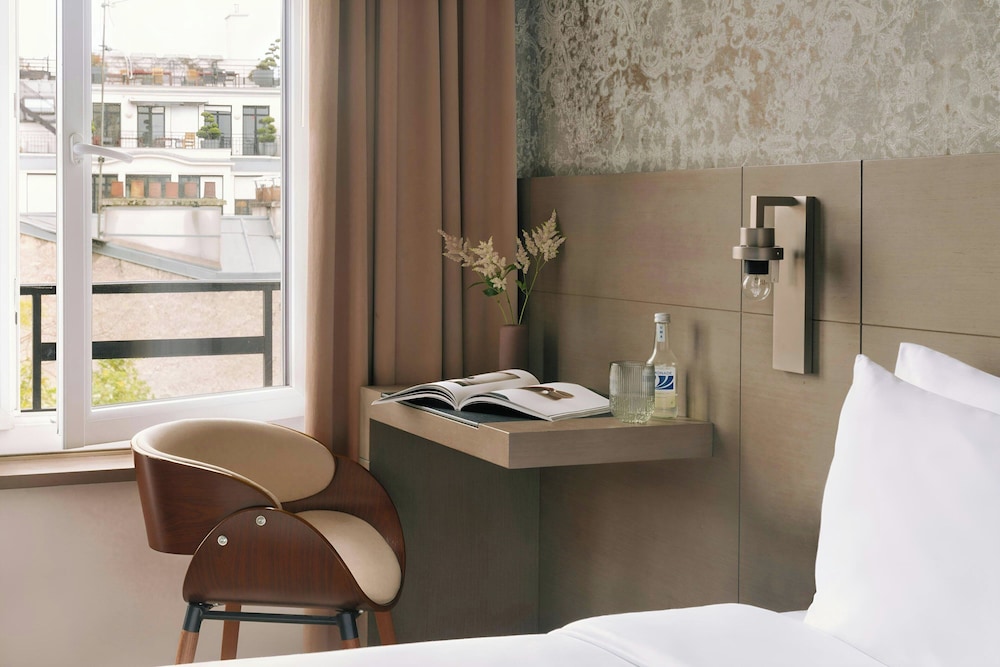 With a stay at Atala Champs Elysées, you'll be centrally located in Paris, steps from Lido and minutes from Arc de Triomphe. This 4-star hotel is close to Eiffel Tower and Louvre Museum.Rooms Make yourself at home in one of the 48 guestrooms featuring minibars and flat-screen televisions. Complimentary wireless Internet access keeps you connected, and satellite programming is available for your entertainment. Bathrooms have hair dryers and slippers. Conveniences include phones, as well as safes and desks. Pamper yourself with onsite massages or enjoy recreation amenities such as a fitness center. Additional amenities include complimentary wireless Internet access, babysitting/childcare (surcharge), and tour/ticket assistance.Dining Grab a bite from a snack bar/deli, or stay in and take advantage of the hotel's room service (during limited hours). Quench your thirst with your favorite drink at a bar/lounge.Business, Other Amenities Featured amenities include a business center, complimentary newspapers in the lobby, and dry cleaning/laundry services. A roundtrip airport shuttle is provided for a surcharge (available on request).