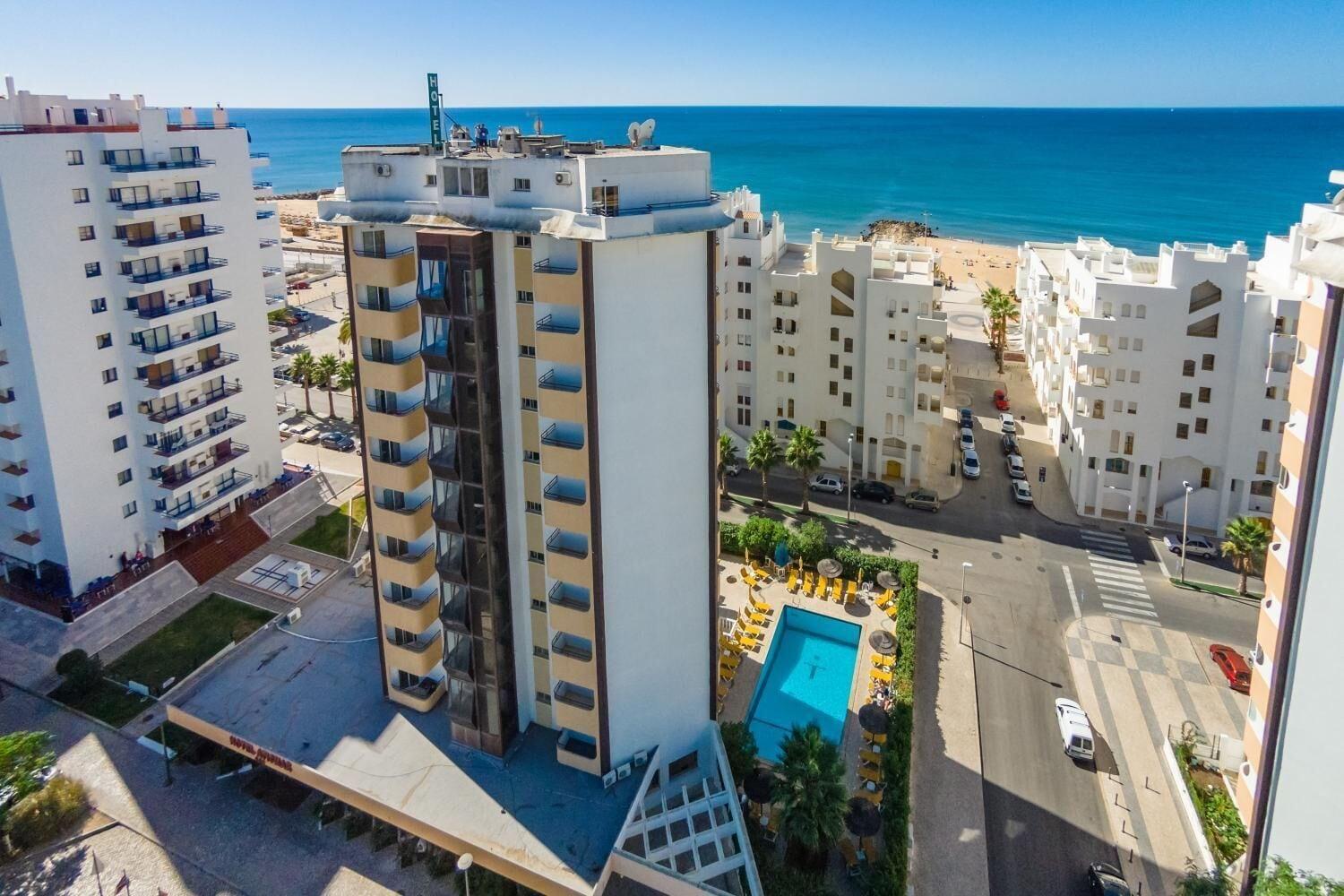 This bright and friendly hotel is conveniently situated in the holiday resort of Quarteira, just a stone's throw from one of the longest sandy beaches of the Algarve. Numerous shopping facilities, restaurants and bars are in the vicinity, Vilamoura with its beach, marina and casino is just a few minutes by car. The international airport of Faro can be reached within a short drive