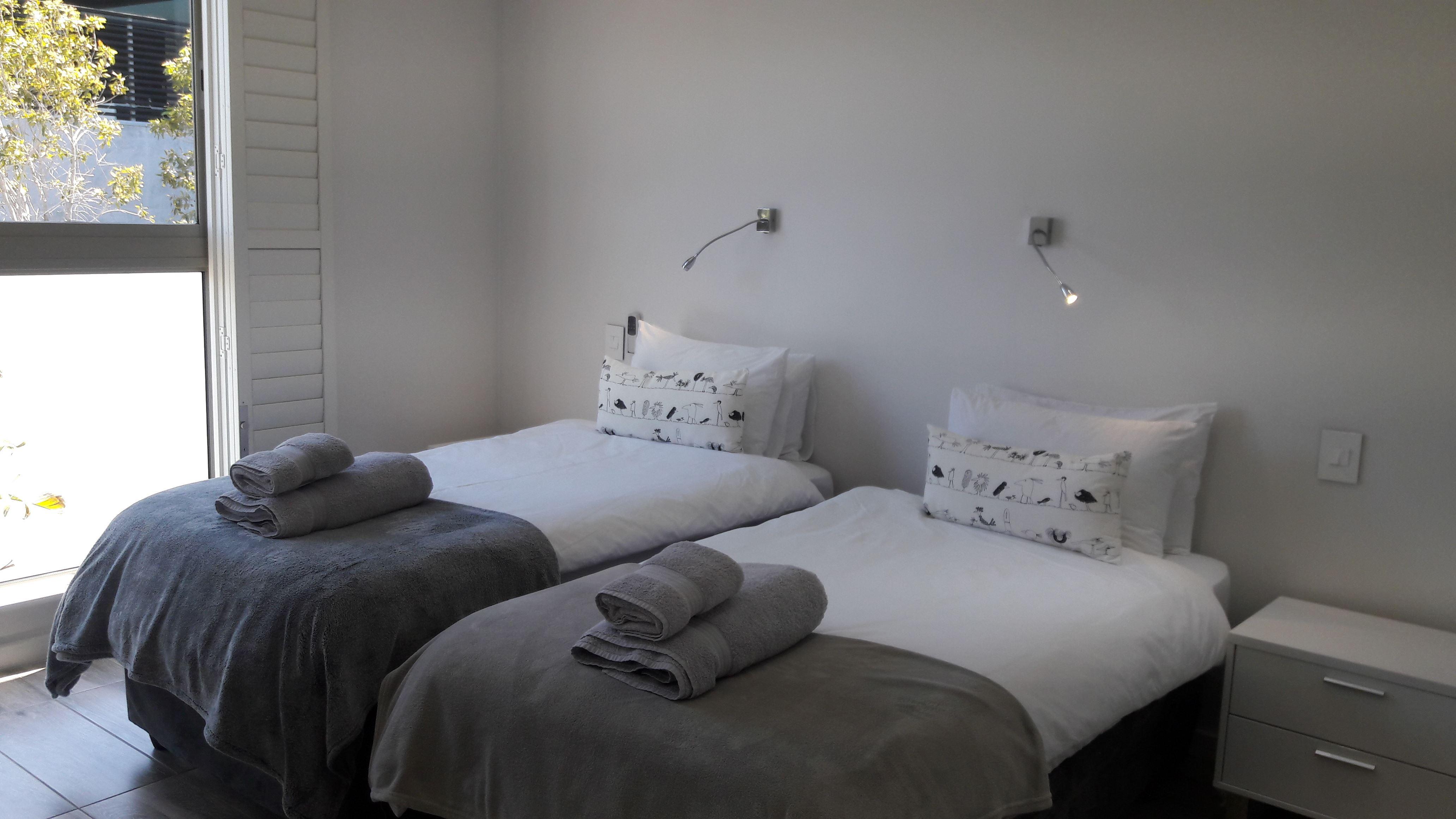This modern apartment is located in the upmarket suburb of Camps Bay in Cape Town and boasts great views. The apartment is situated a mere 400 meters from Camps Bay Beach and 2.8 kilometres from Table Mountain.The apartment comprises two tastefully decorated bedrooms and two bathrooms. The first bedroom contains a double bed and the second bedroom contains two single beds. All beds are fitted with cotton linen. The open-plan living area has a kitchenette and a comfortable lounge area. The kitchenette is well-equipped with fridge-freezer, microwave, crockery and cutlery. Leading out