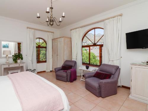 Experience True Hospitality in this four star owner managed Tuscan styled Villa. We within walking distance of the beach, central Fish Hoek and have easy access to all of Cape Town’s attractions. The Villa boasts six en suite rooms with 100% percale cotton linen, down duvets and posturpedic beds. A full English or health breakfast is served. Specific provision for accessibility by mobility impaired guests shows that we pay attention to your every need. Off street secure parking. Each room has a TV with Satellite, safes, hair dryers and a clock radio. All bathrooms have heated towel