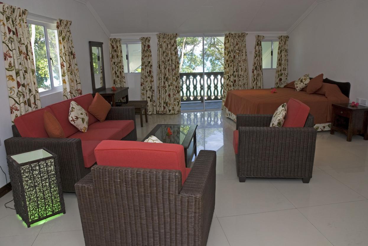Augerine Guest House is situated on Mahé’s beautiful beach of Beau Vallon. Mahé is the largest island in the Seychelle, lyng in the north-east side island. Mahé has a backdrop of towering 1,000-metre granite peaks and is an extraordinary treasure trove of flora that has evolved over centuries of splendid isolation.The guest house offers 12 comfortably furnished rooms and three Junior Suites, all with sea views. The units all have modern conveniences and feature an en-suite bathroom, air-conditioning, a small fridge, and a safe. The 400-year old Takamaka tree turned upside down, wit