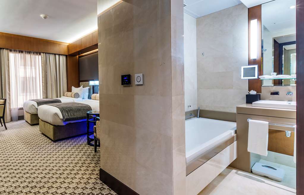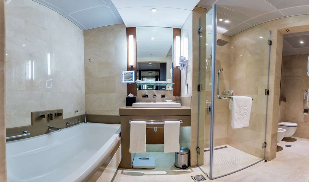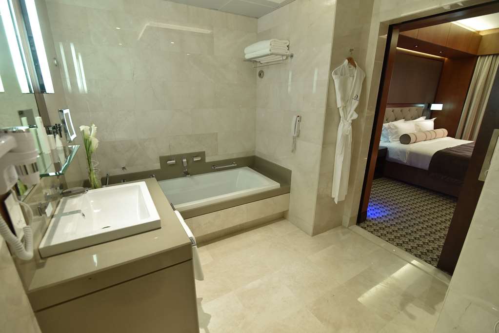 Ayla Grand Hotel is the latest high-end 5 star property of Ayla Hotels & Resorts Al Ain. Strategically situated in the town center of Al Ain, the highest hotel in the city is within walking distance of major attractions, business centers and shopping stores across the road in the Al Ain Mall.Ayla Grand Hotel is the ideal destination for those seeking an extravagant business or leisure experience with luxurious comfort. An upscale retreat in the heart of the garden city with a luxurious state of the art ambience, Ayla Grand Hotel has 220 guest rooms including 75 uniquely furnished opulent suites. All rooms and suites are richly decorated; keeping in mind comfort and elegance.Choose from a variety of room and suite types; classic, deluxe to lavish one, two and three bedroom suites. All are equipped with the latest technology including a lighting control panel and options of both a standing shower and spacious bath tub. The hotel has an array of dining options to tantalise all taste buds from a cosy coffee shop, Tamra Café in the lobby to a lavish fine dining specailty restaurant on the mezzanine level.The all day dining, Nara Restaurant serves generous cuisine for breakfast, lunch and dinner. Guests may also enjoy a wide range of snacks and beverages at Sky5 Café while relaxing at the rooftop pool. The spacious Pearl Ballroom of 264m² accommodates up to 200 guests for all types of business and social occasions, tailor made to match any requirement. The additional boardrooms are perfect for smaller gatherings. Fitness classes offered are perfect to get your heart rate up and ensure you have the exercise needed for a healthy shape and mind.Cool off with a refreshing dip and enjoy stunning open air views from the rooftop pool overlooking the garden city, suitable for couples and families.