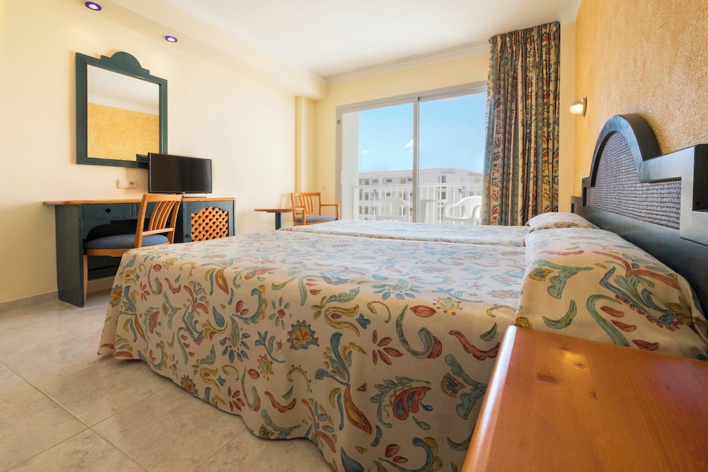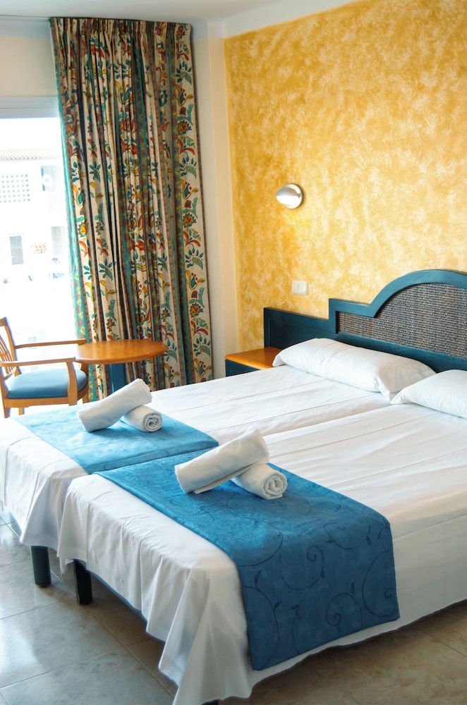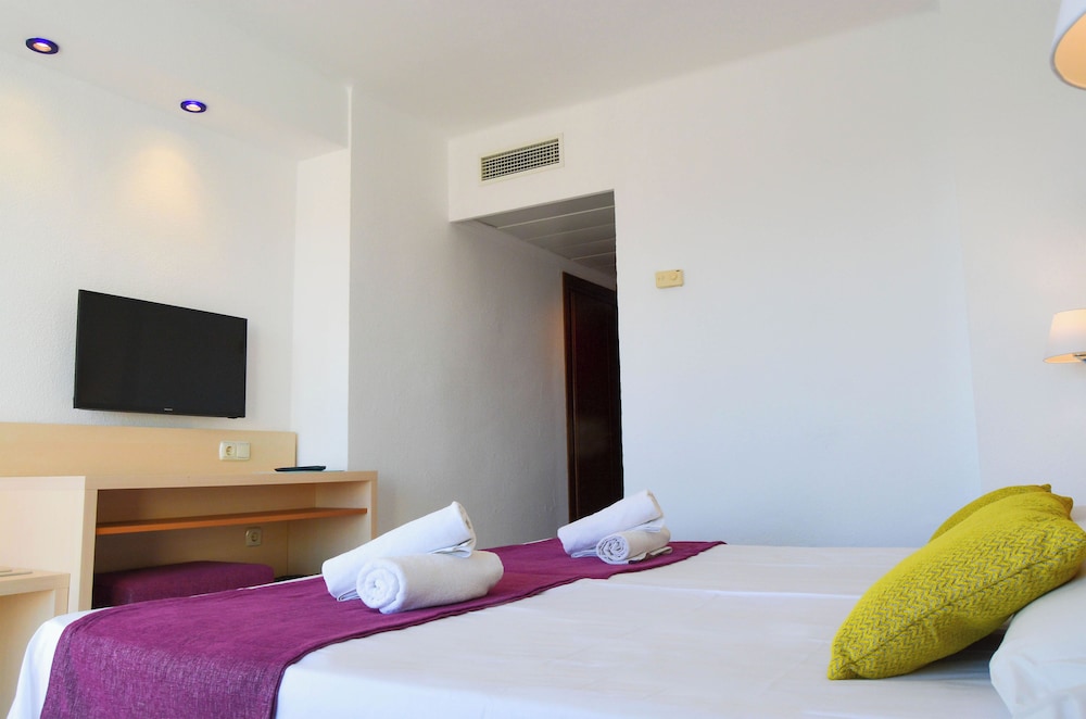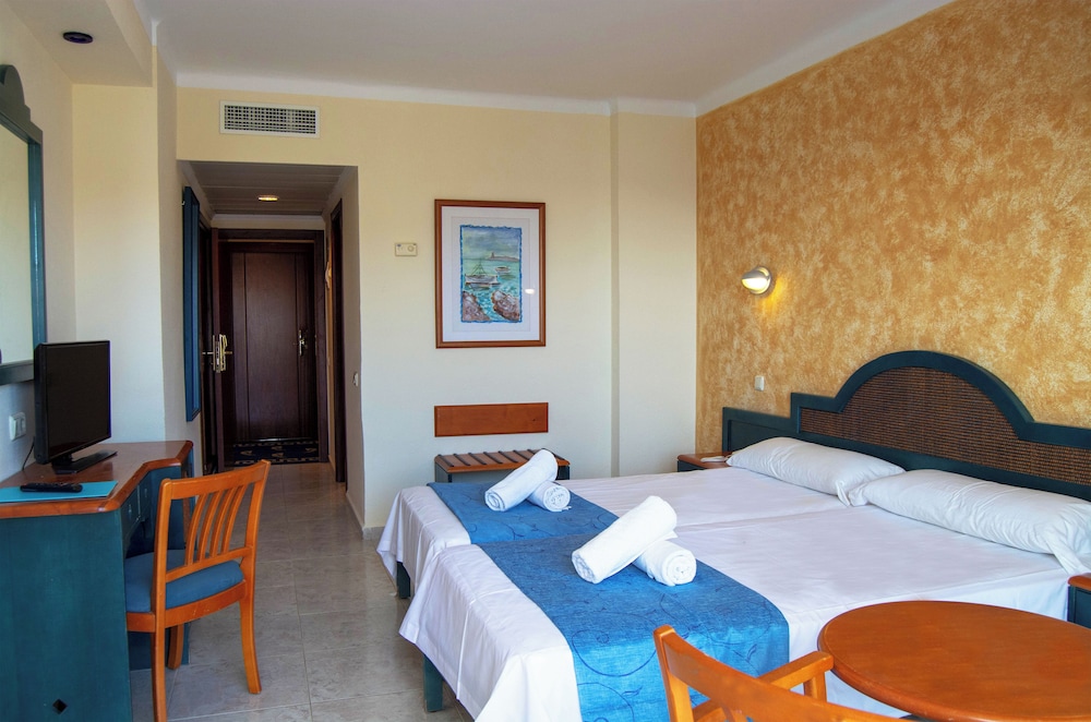 This beach hotel is situated on the east coast of the island of Ibiza, in the Es Canar tourist resort. It enjoys a sheltered location at the end of a rugged coastline, close to one of the largest capes. Es Canar and Cala Nova beaches are only around 400 m from the hotel, whilst the centre of Santa Eulalia is around 4 kms away. The nearby public transport links (200 m away) provide easy access to the local town. Ibiza Airport is some 20 kms from the hotel. The resort comprises a total of 255 rooms in a 5-storey building. It is fully air-conditioned. Younger guests can let off steam in the playground or playroom. The comfortable rooms are en-suite and include modern amenities. Guests can take advantage of the outdoor swimming pool with sun loungers and parasols. In addition to the activities available, there is also a seasonal entertainment programme to provide some variation for guests.